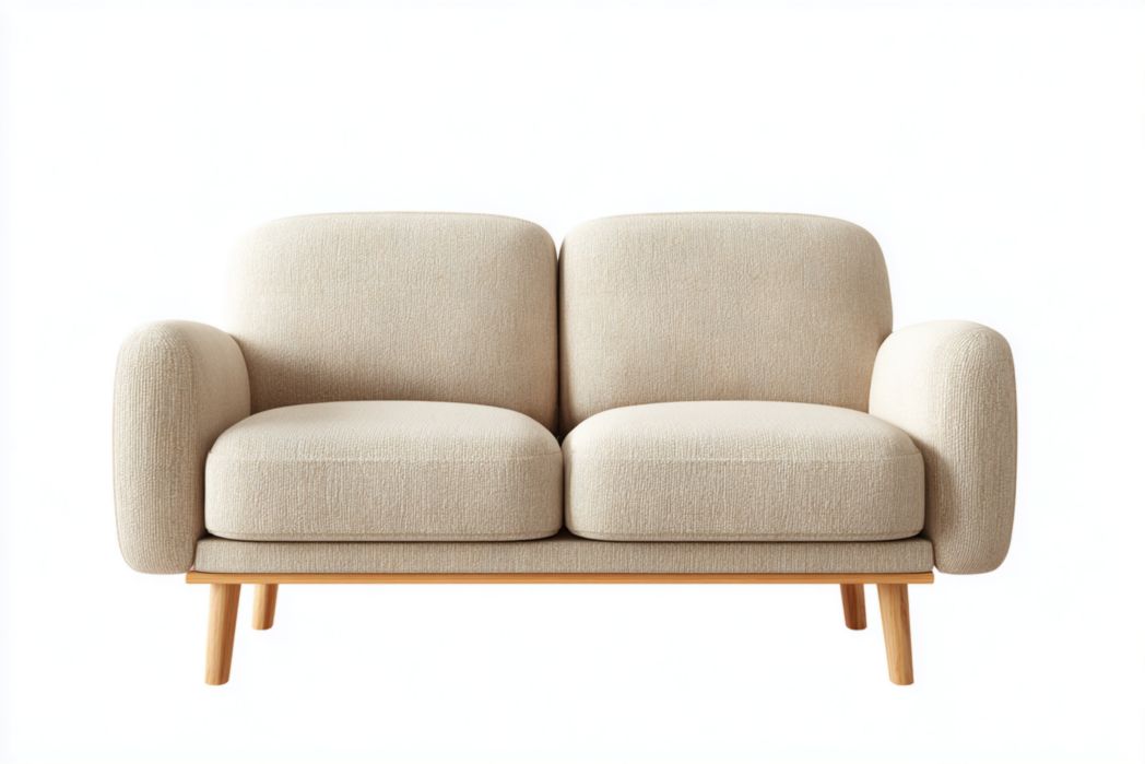 66% OFFDANS LE PANIEREnregistrer € 143.20Canapé 2 places en tissu beige clair, pieds en bois brun clair