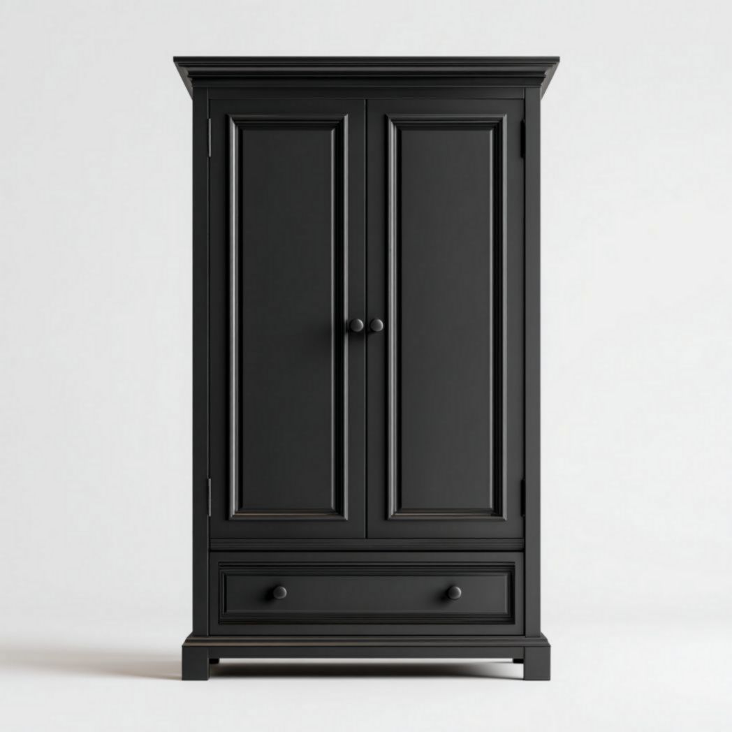 Armoire en bois gris foncé à deux portes avec tiroir brun clair