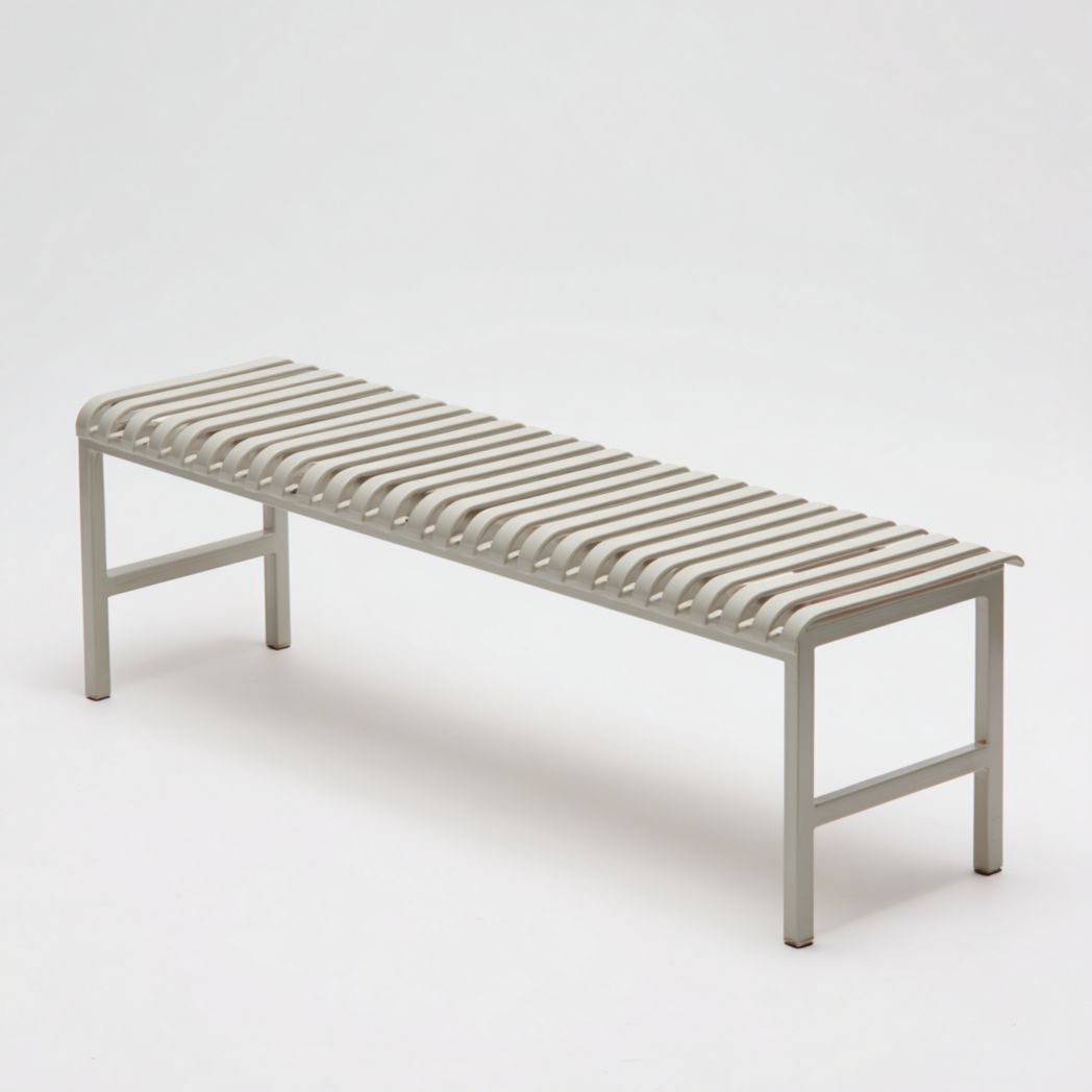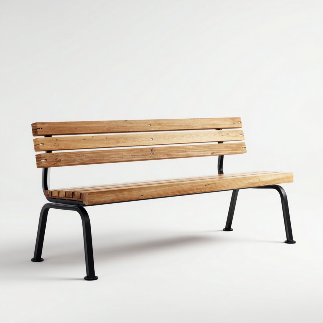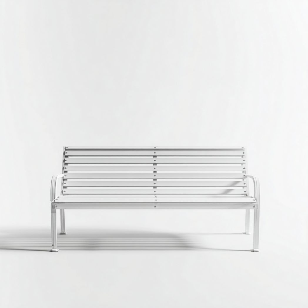 Banc de jardin en métal avec dossier ajouré bleu et accoudoirs noirs