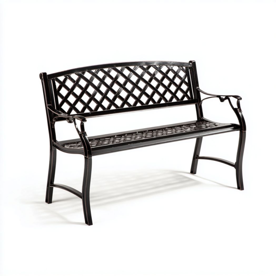 Banc de jardin en aluminium moulé noir avec dossier ajouré