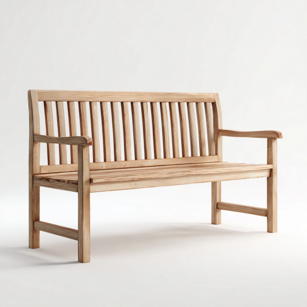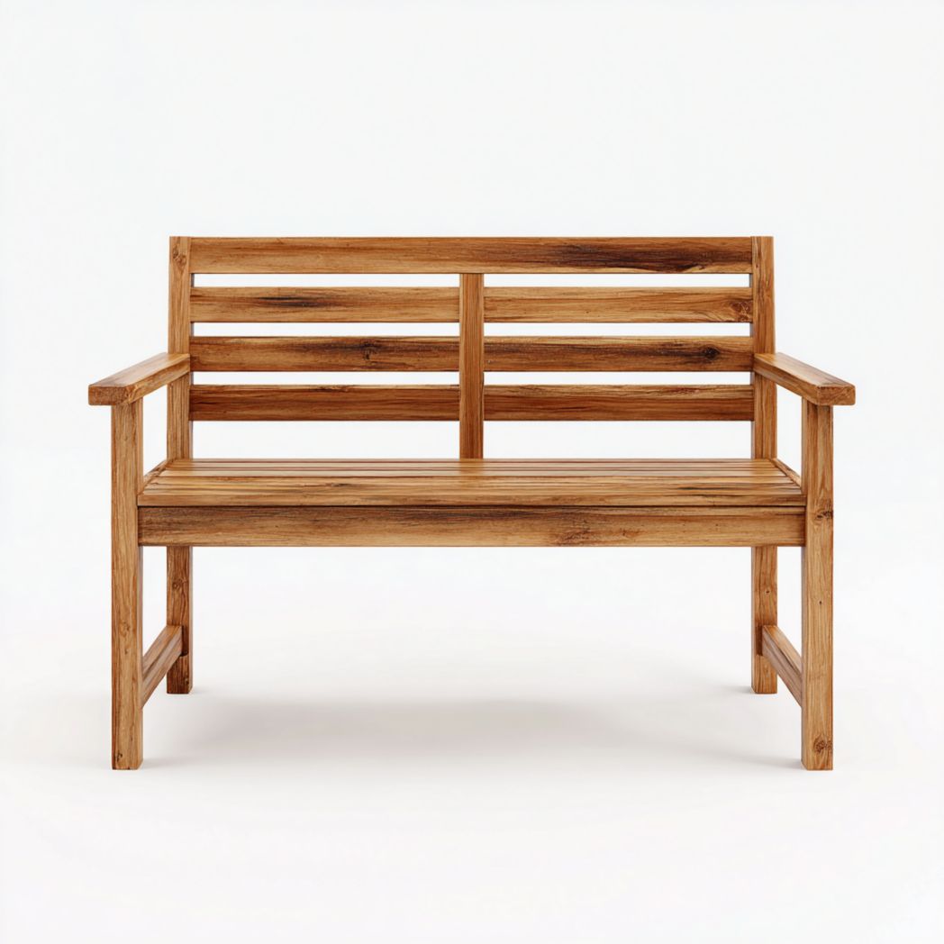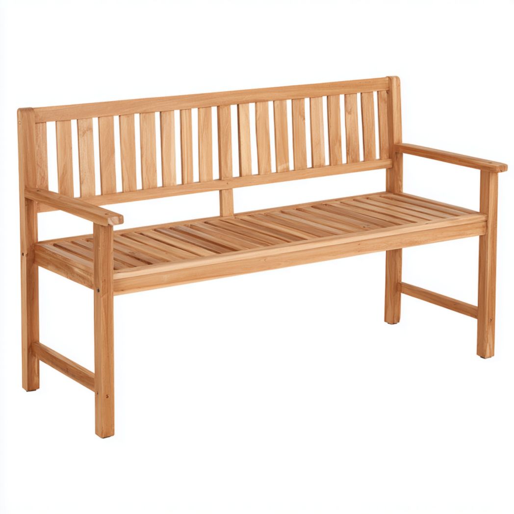 Banc de jardin en bois massif brun clair à dossier à lattes