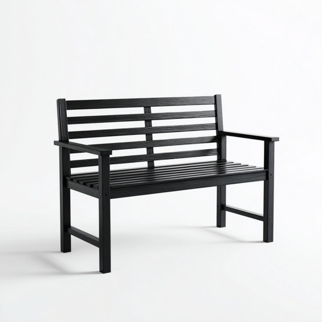 Banc de jardin à lattes en bois noir avec accoudoirs