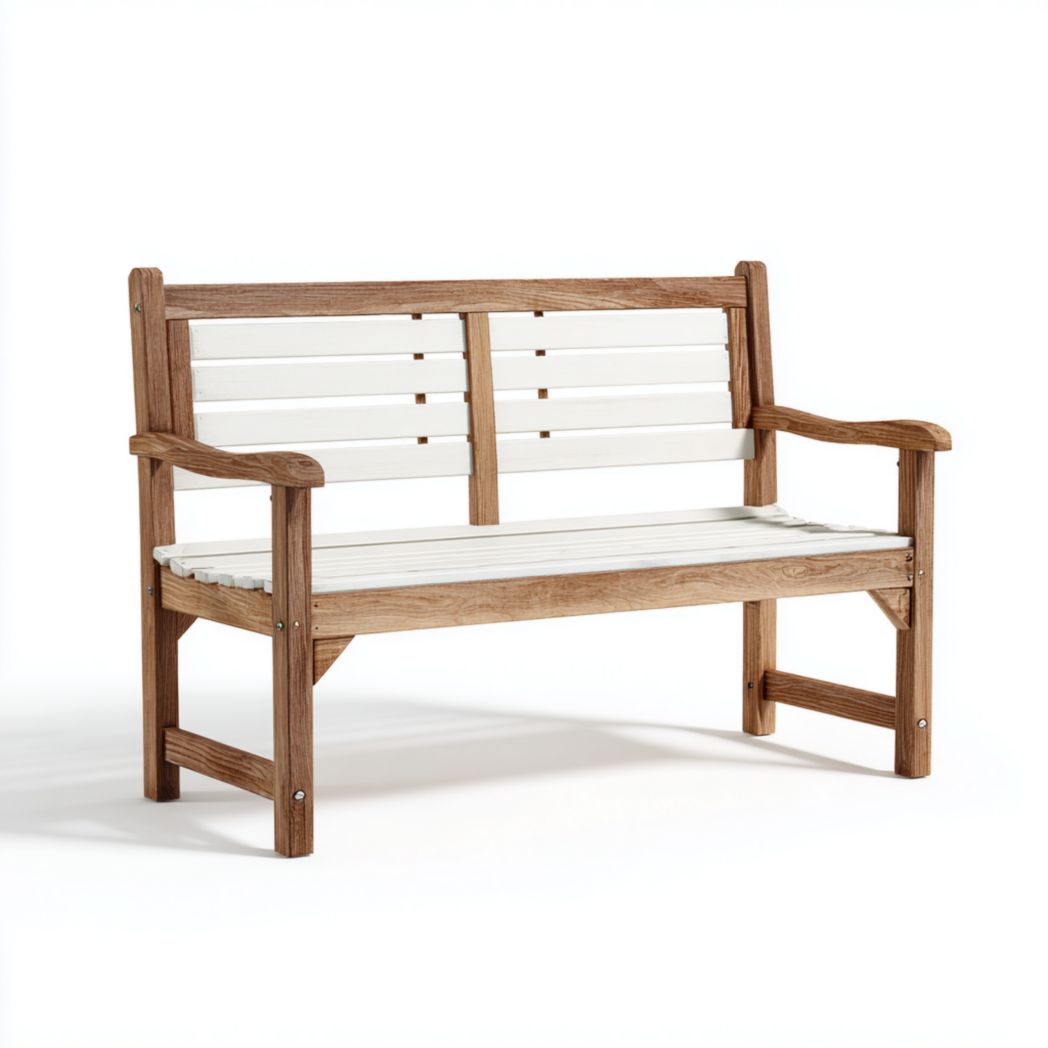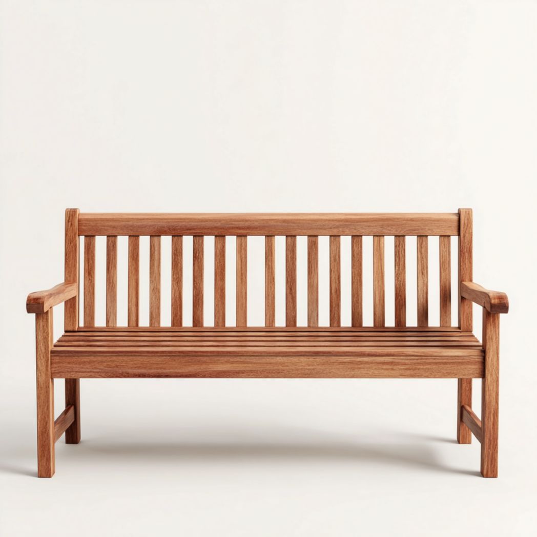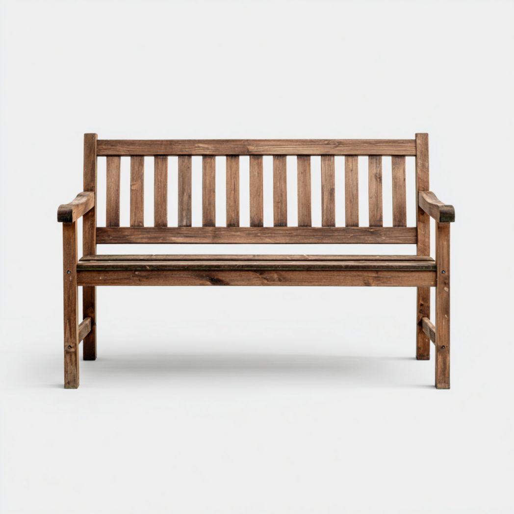 Banc de jardin en bois naturel à lattes avec accoudoirs