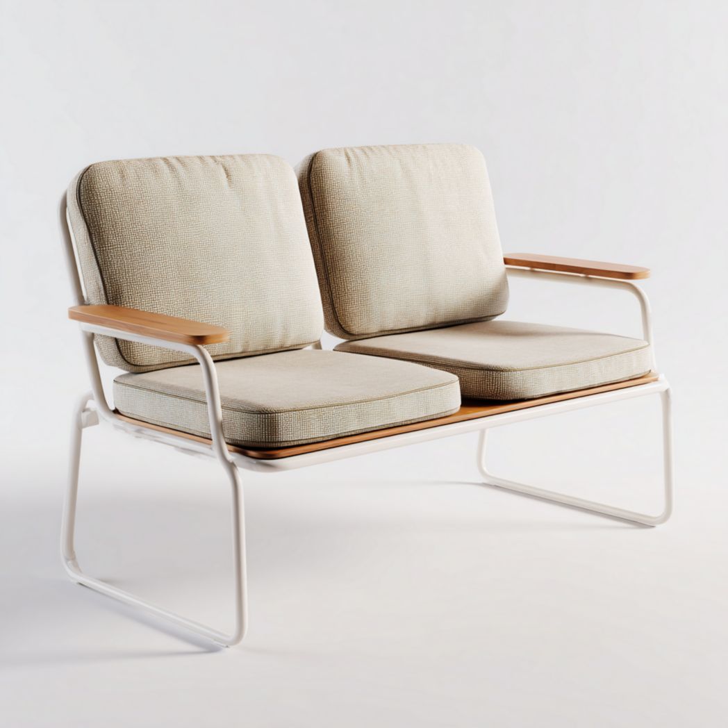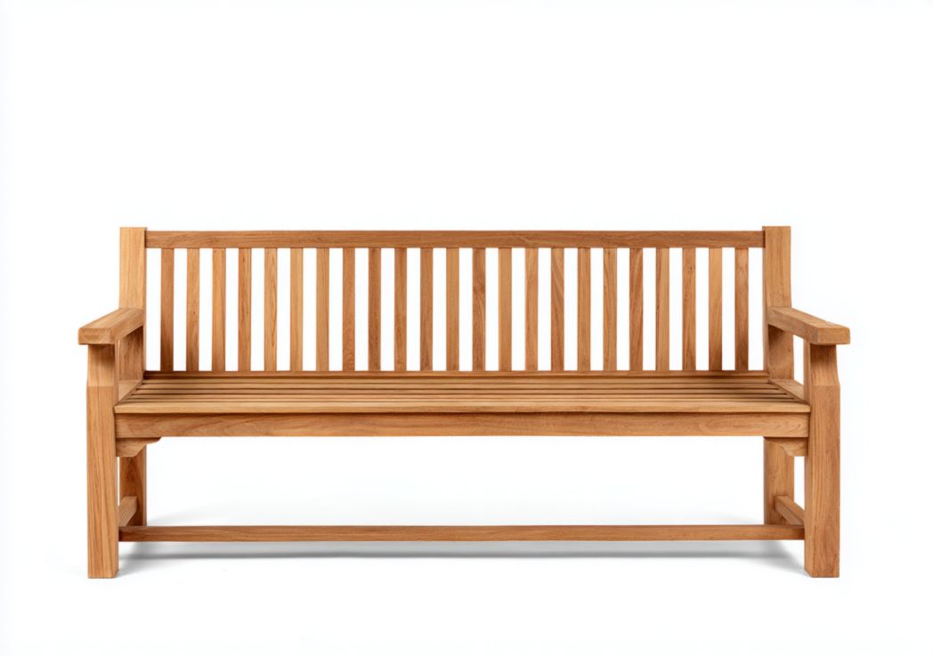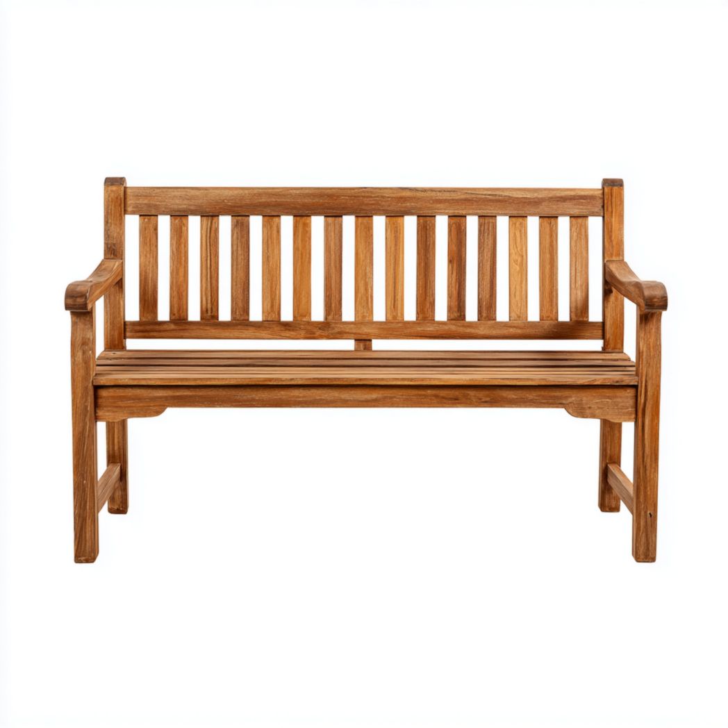 Banc de jardin en bois naturel à lattes avec accoudoirs
