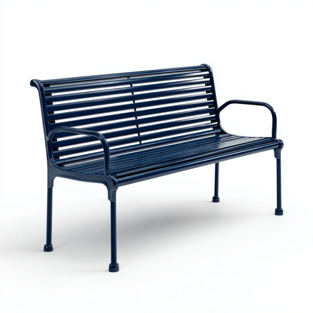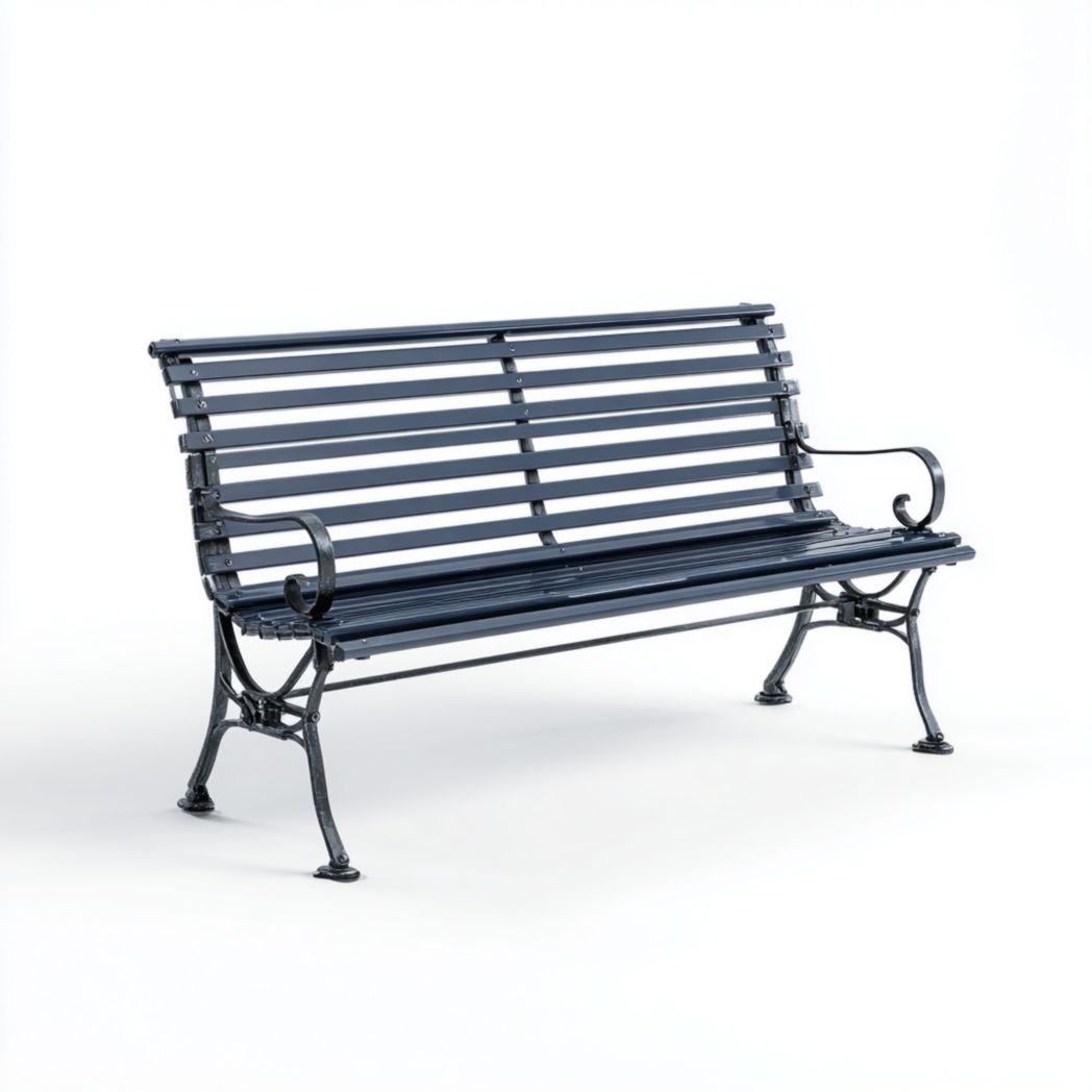 Banc de jardin en bois et fonte noire avec accoudoirs courbés