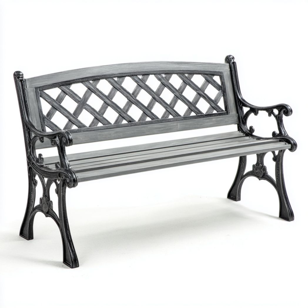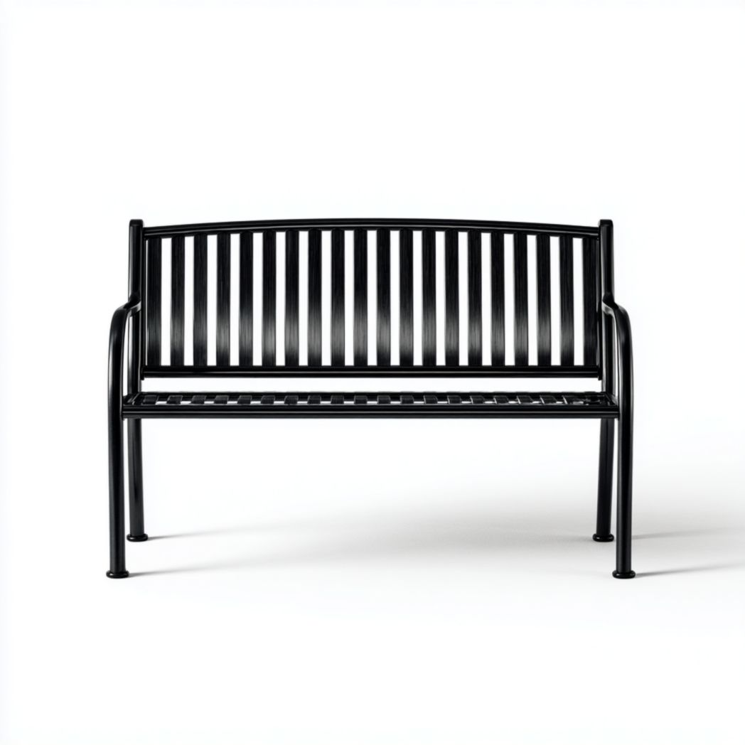 Banc de jardin métal noir à lattes horizontales avec dossier
