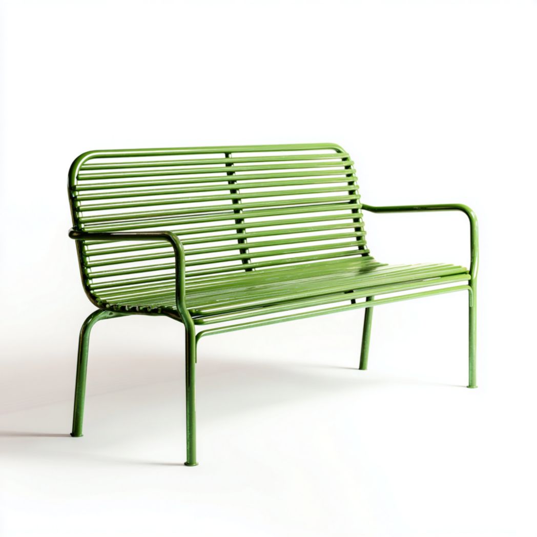 Banc de jardin métal vert à tubes ronds avec dossier et accoudoirs