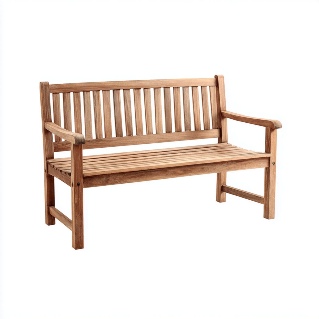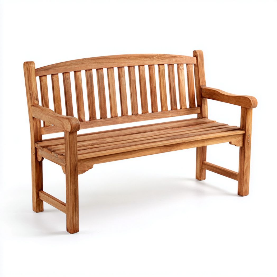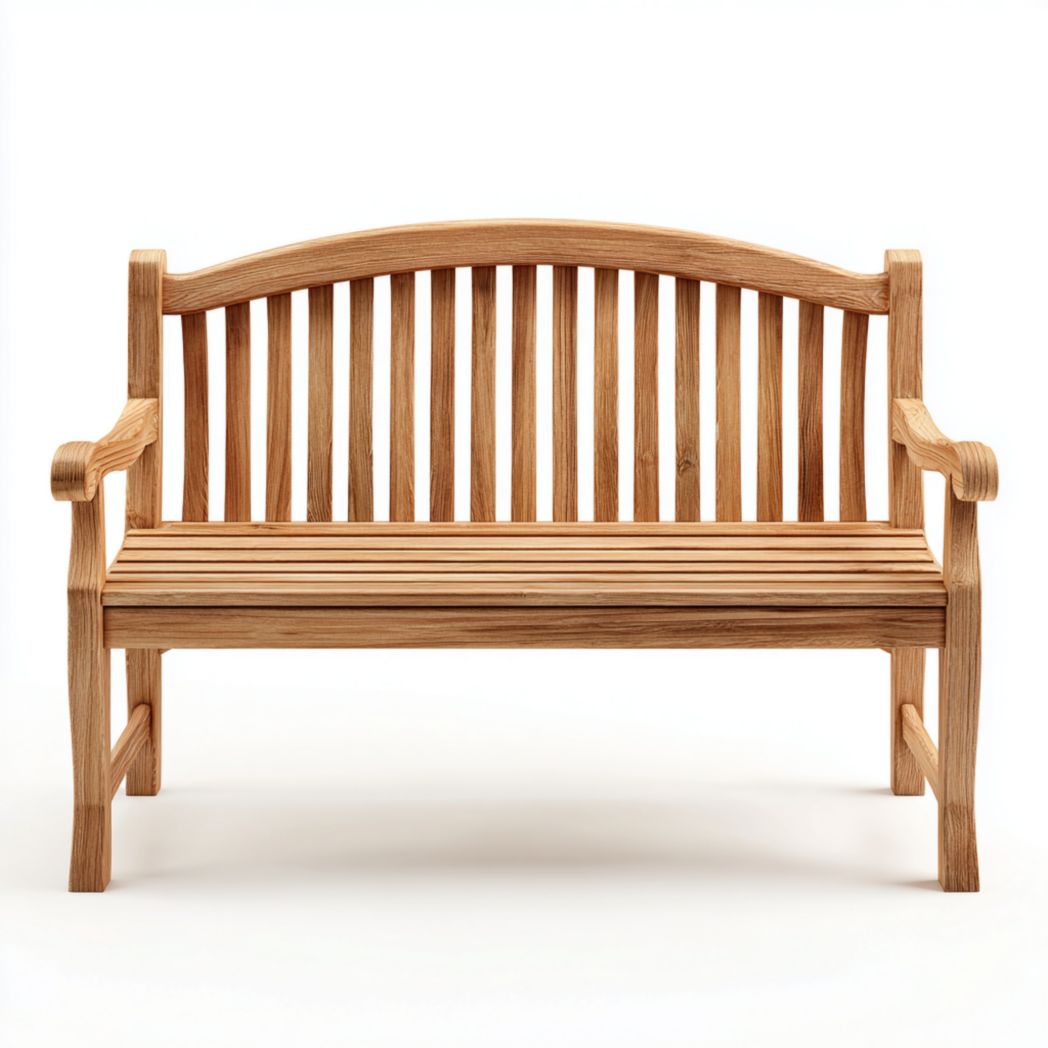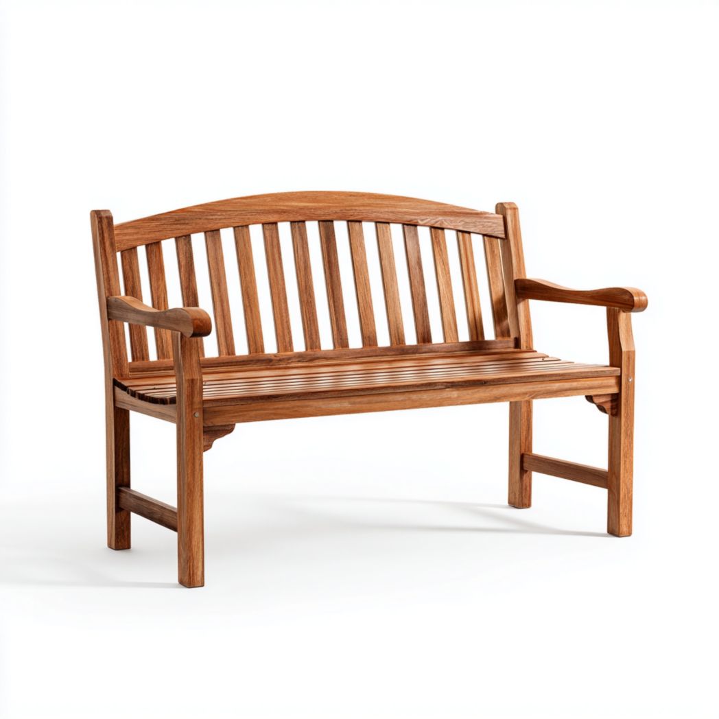 Banc de jardin en bois avec dossier courbé et accoudoirs