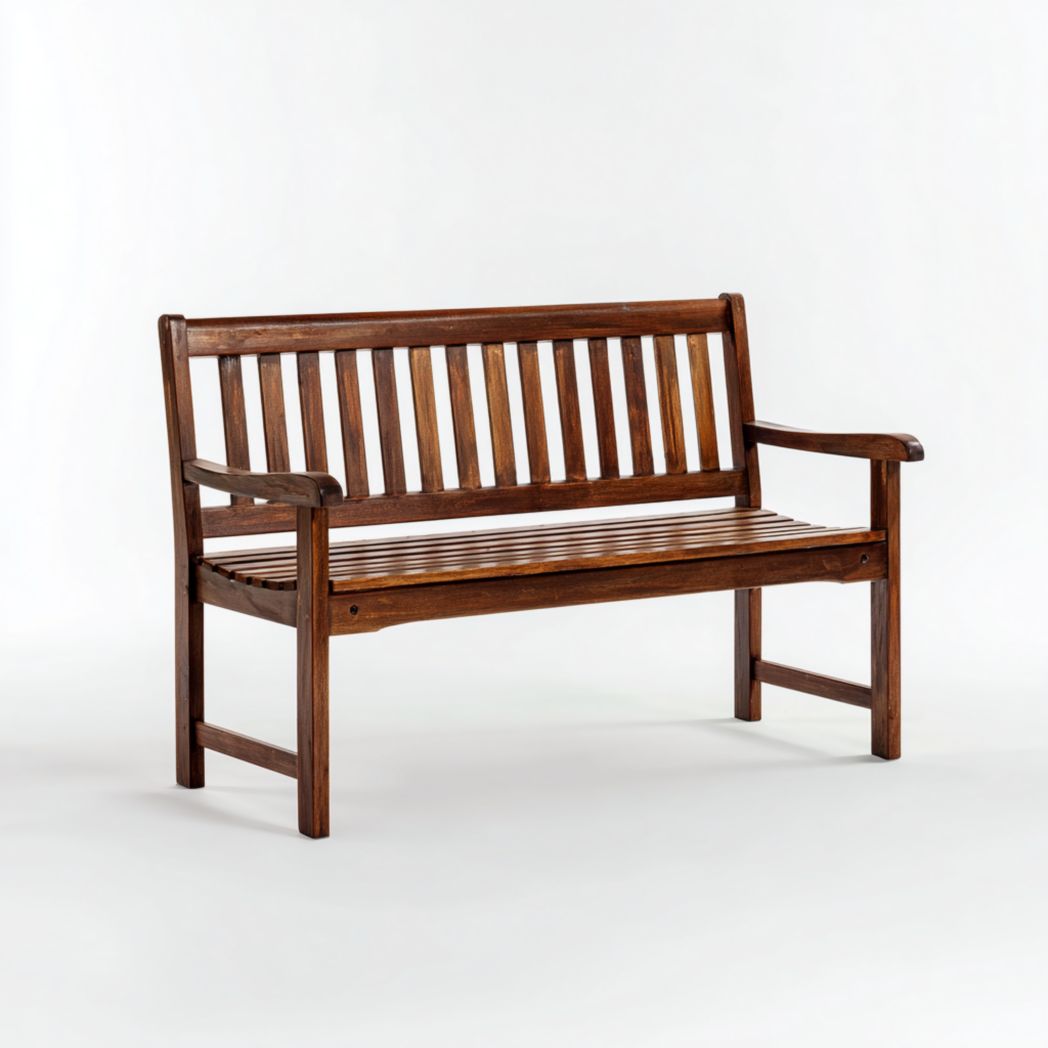 Banc de jardin en bois avec dossier à lattes et accoudoirs