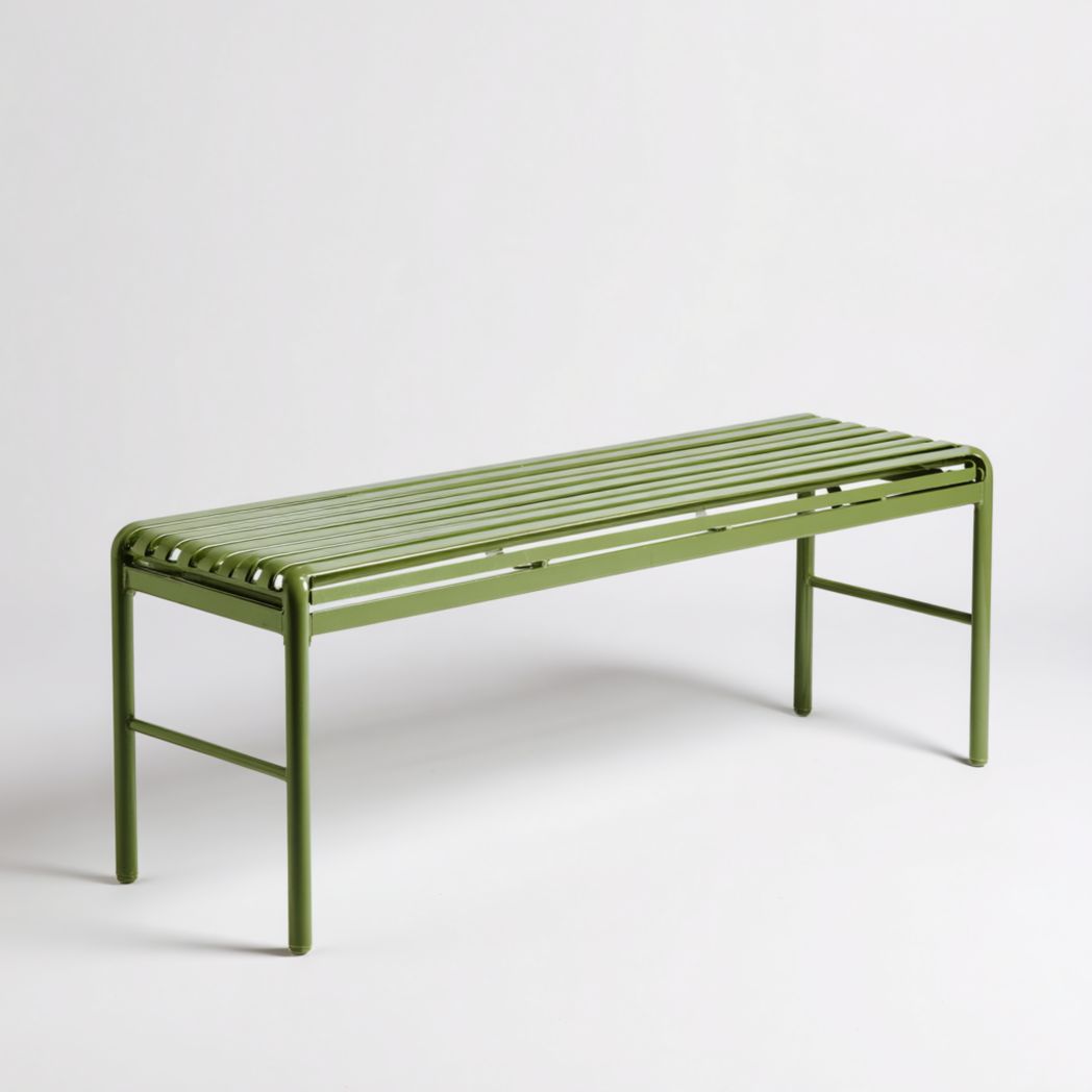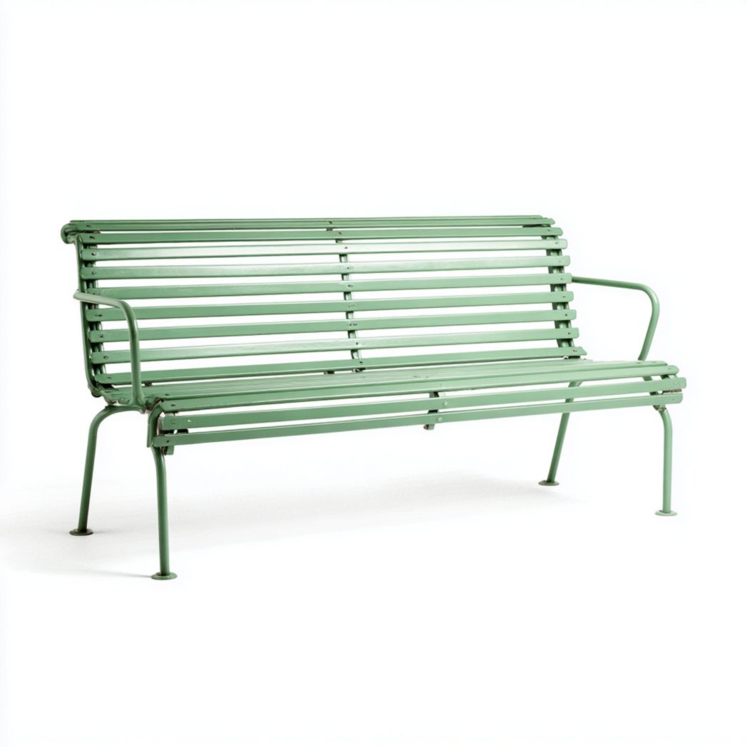Banc de jardin en métal vert avec dossier et assise à lattes