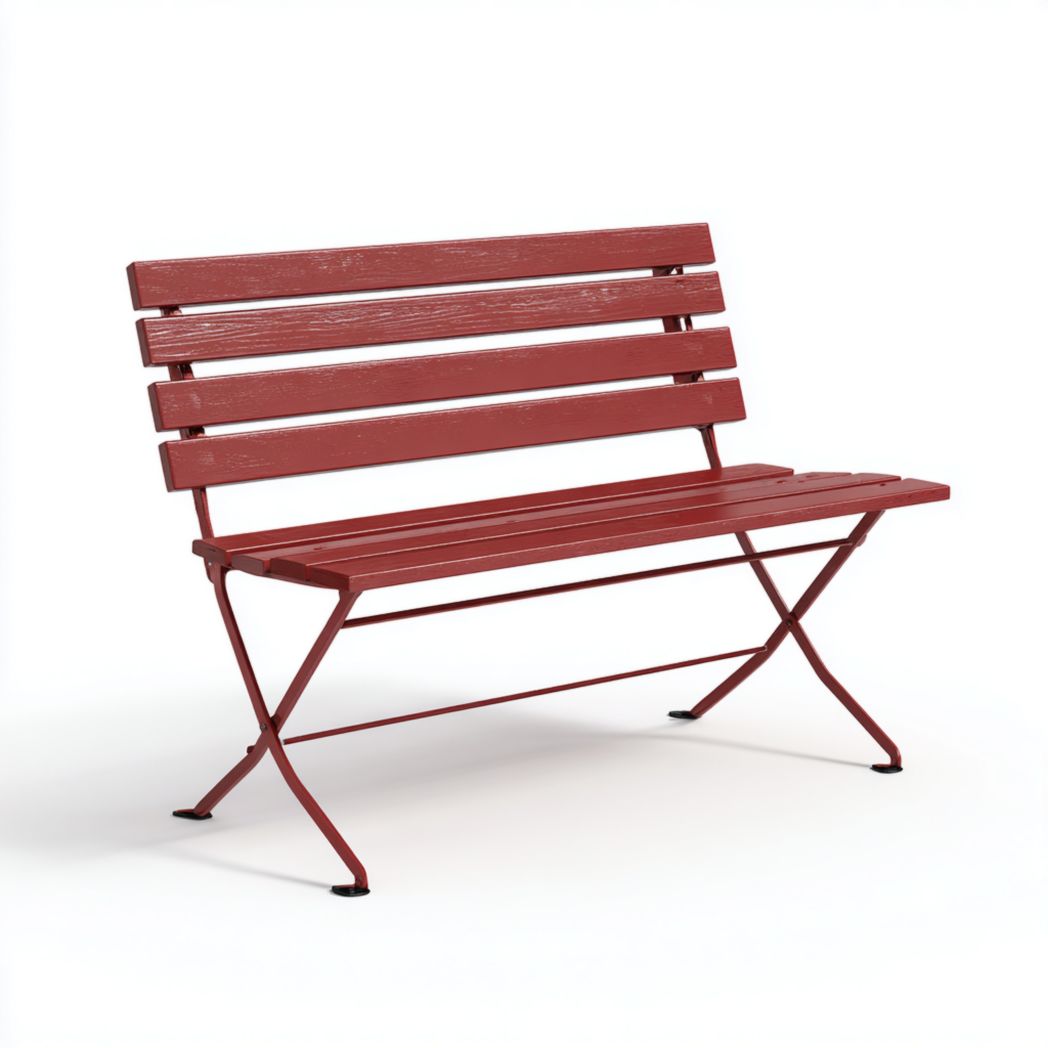 Banc de jardin pliant en métal rouge foncé avec dossier à lattes