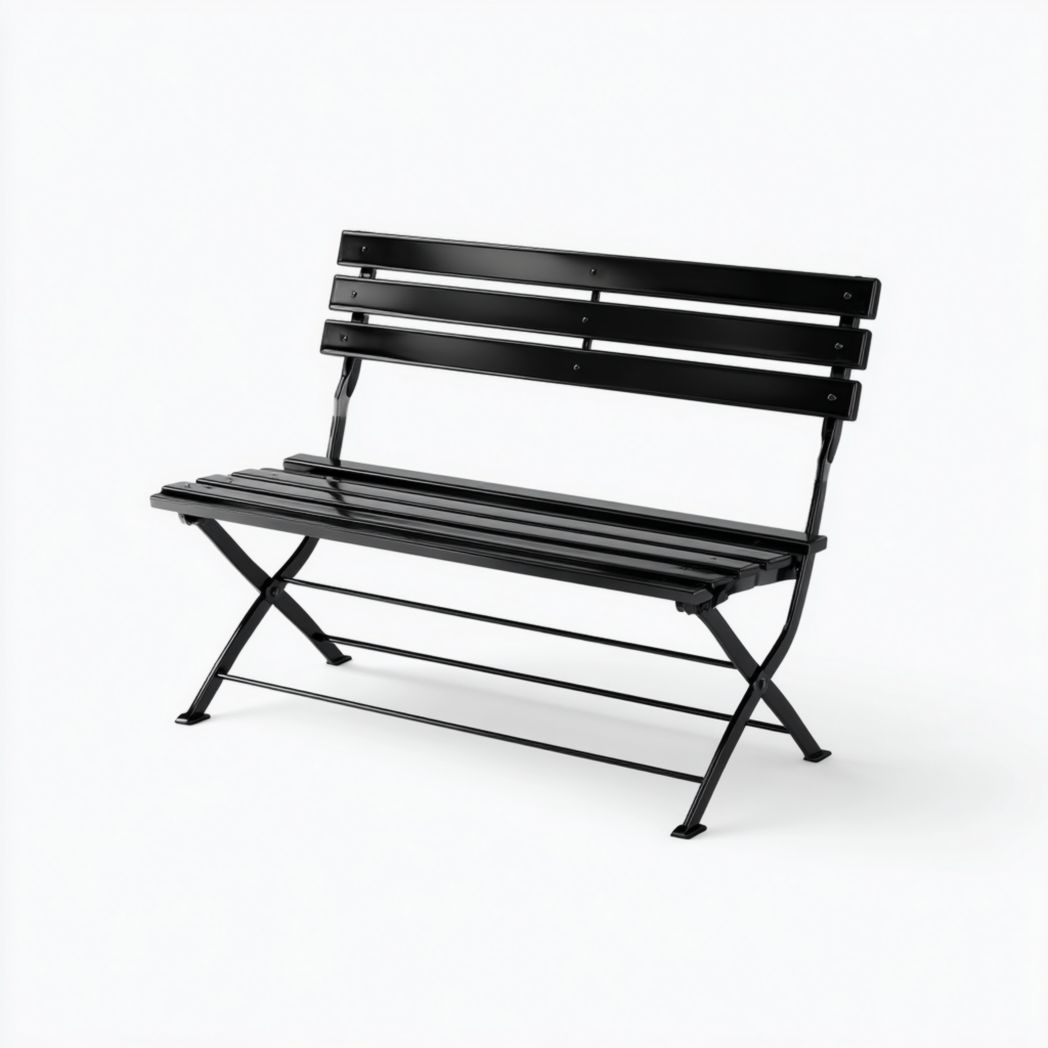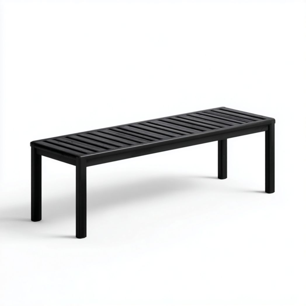 Banc de jardin en métal noir sans dossier à lattes