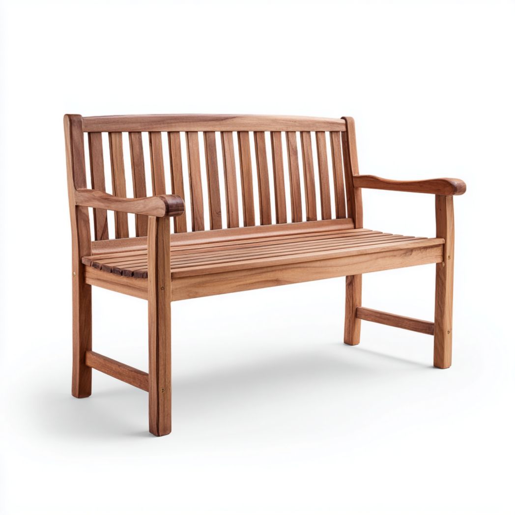 Banc de jardin en bois avec dossier à lattes et accoudoirs