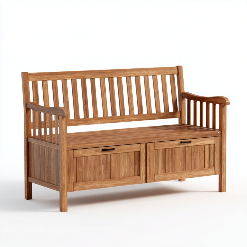Banc de jardin en bois avec coffre de rangement et dossier à lattes