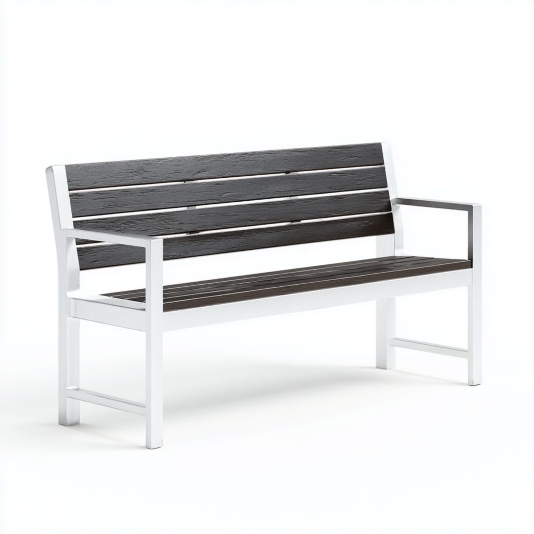 Banc de jardin avec structure en métal blanc et lattes en bois noir