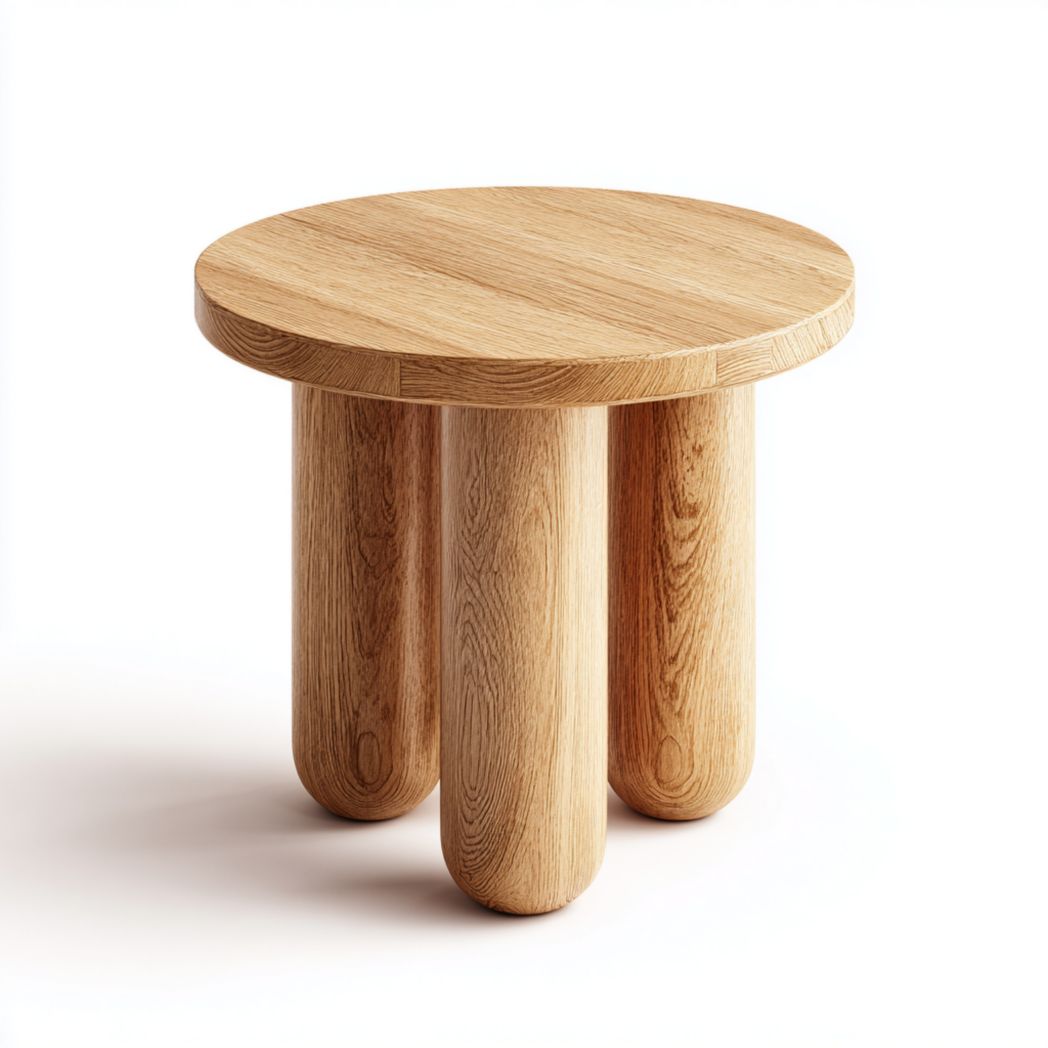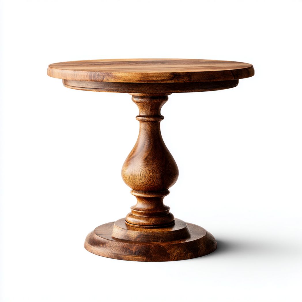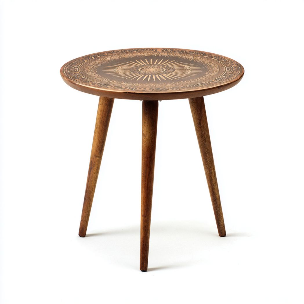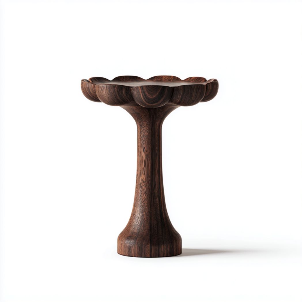 Table ronde en bois massif sculpté marron foncé en forme de pétale