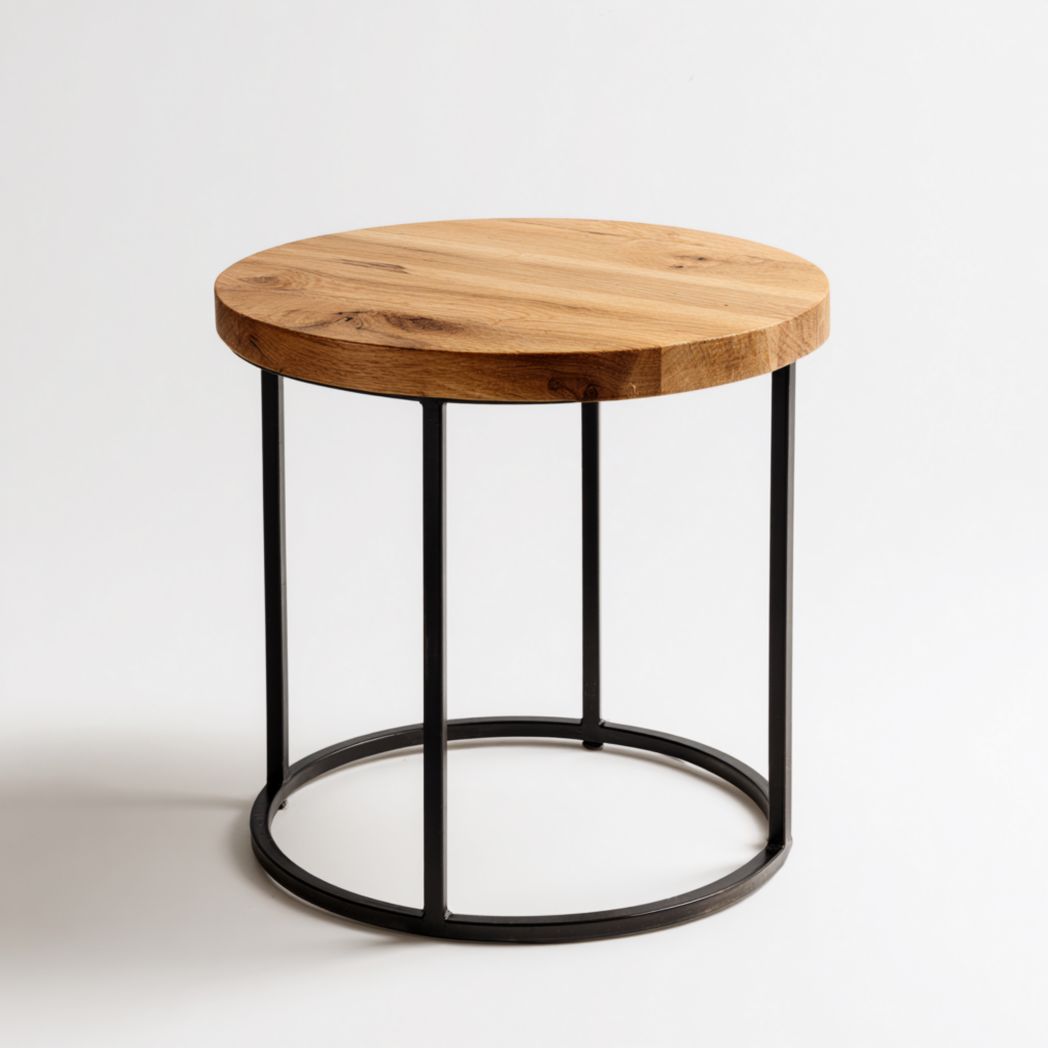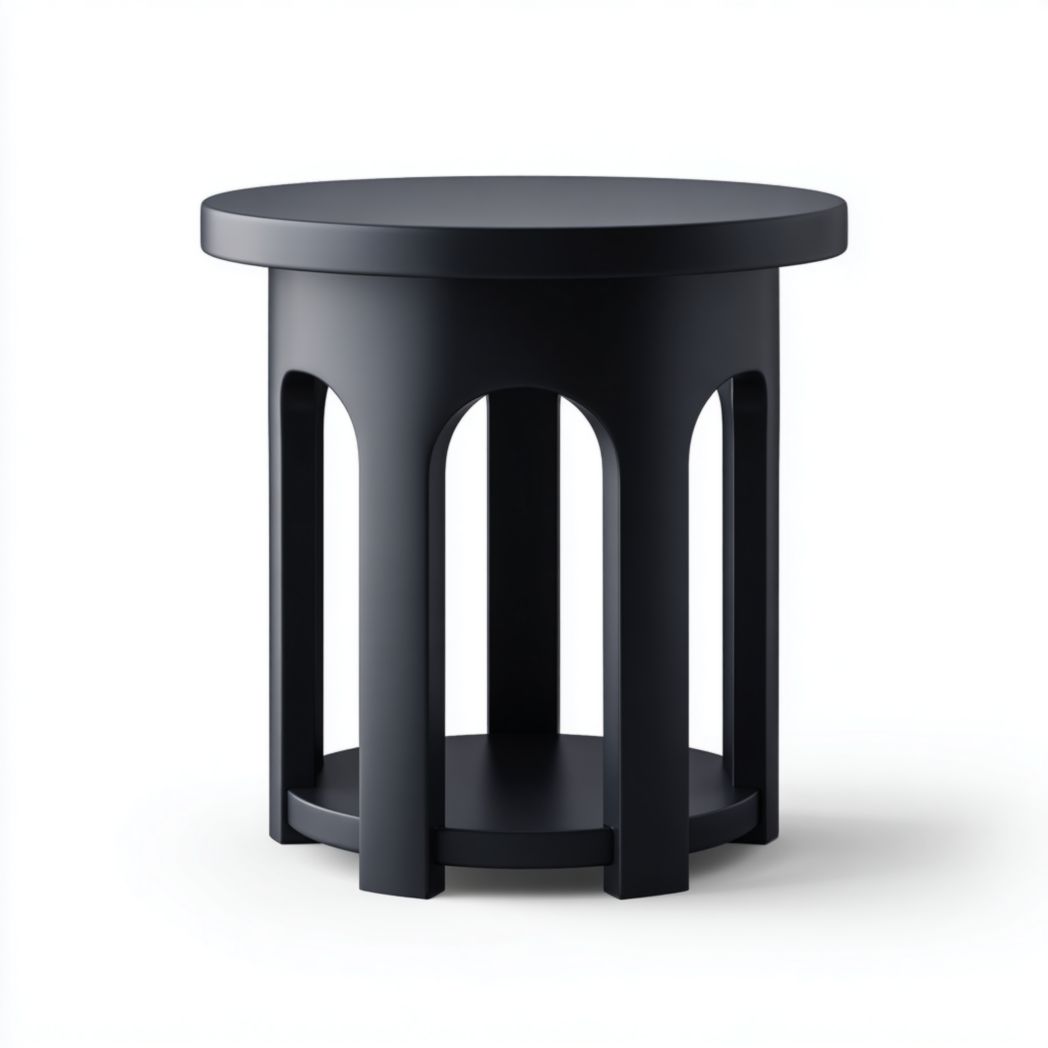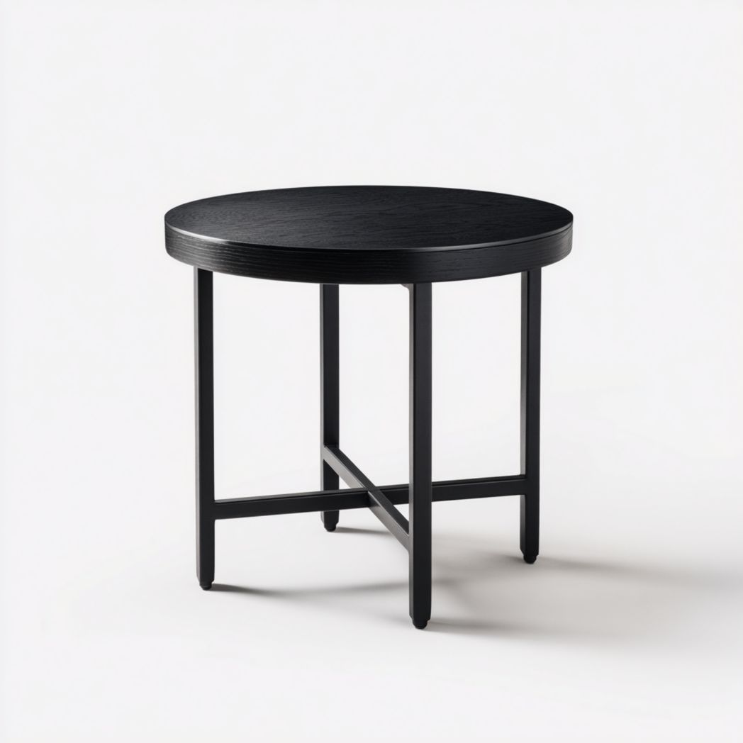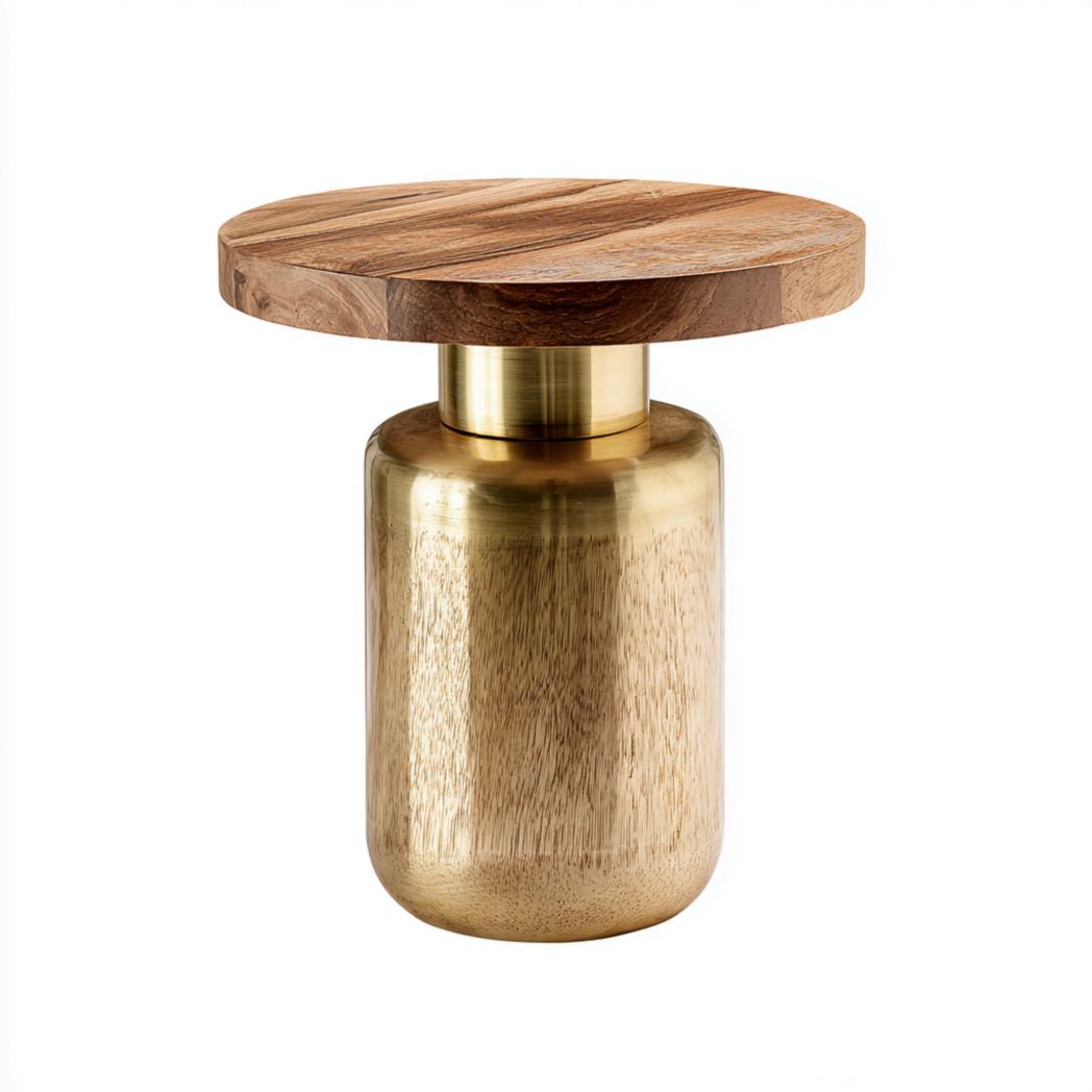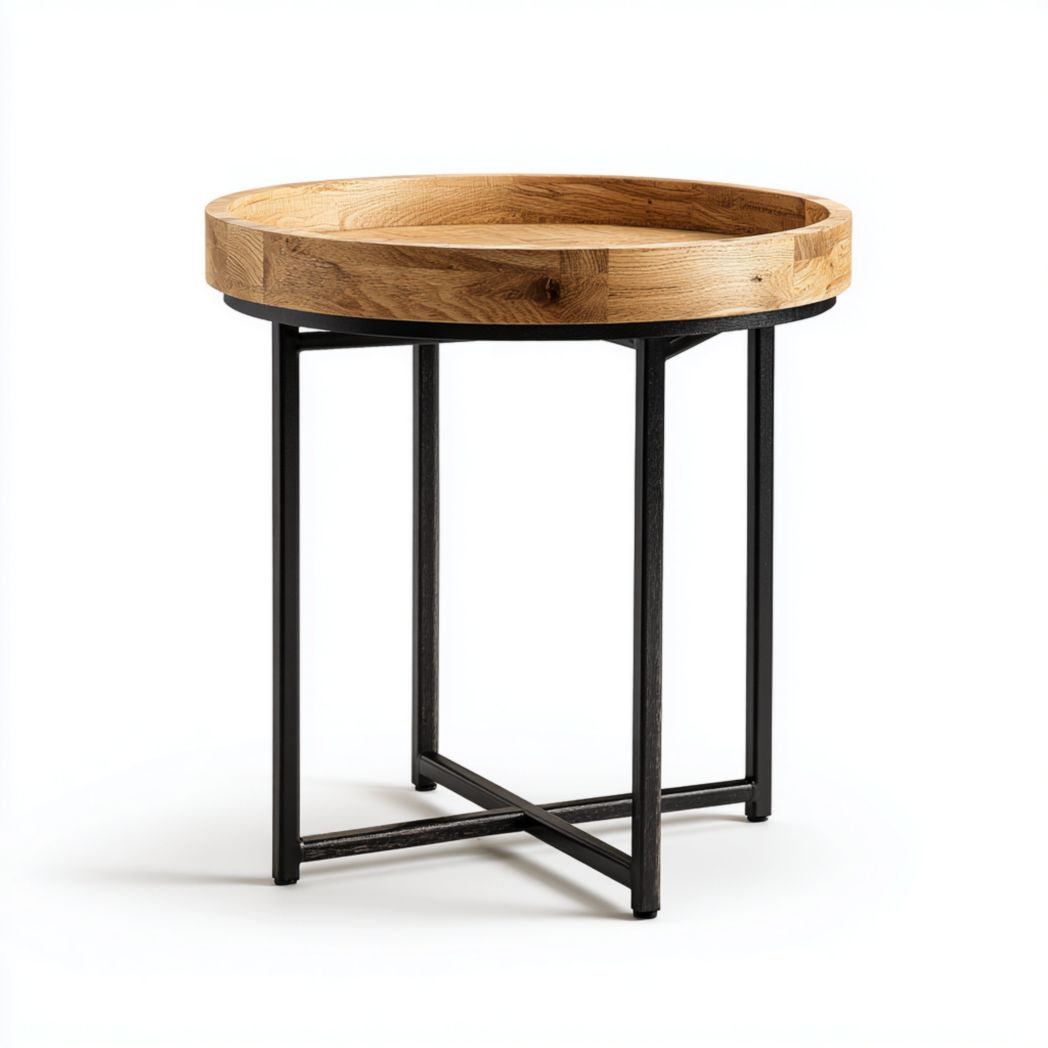 Table ronde en bois massif sculpté marron foncé en forme de pétale