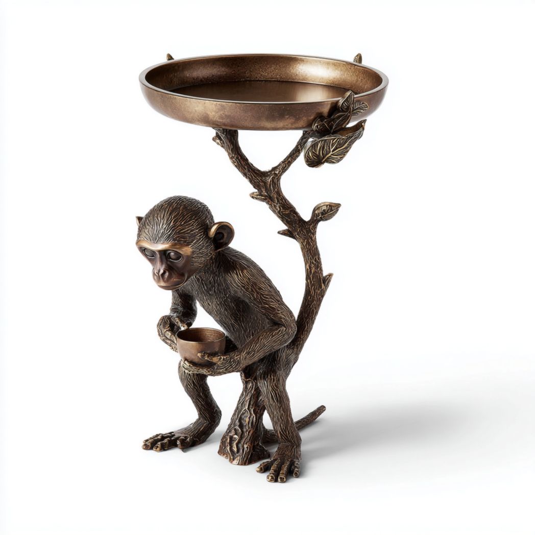 Table d’appoint ronde en bois massif avec piètement sculpté