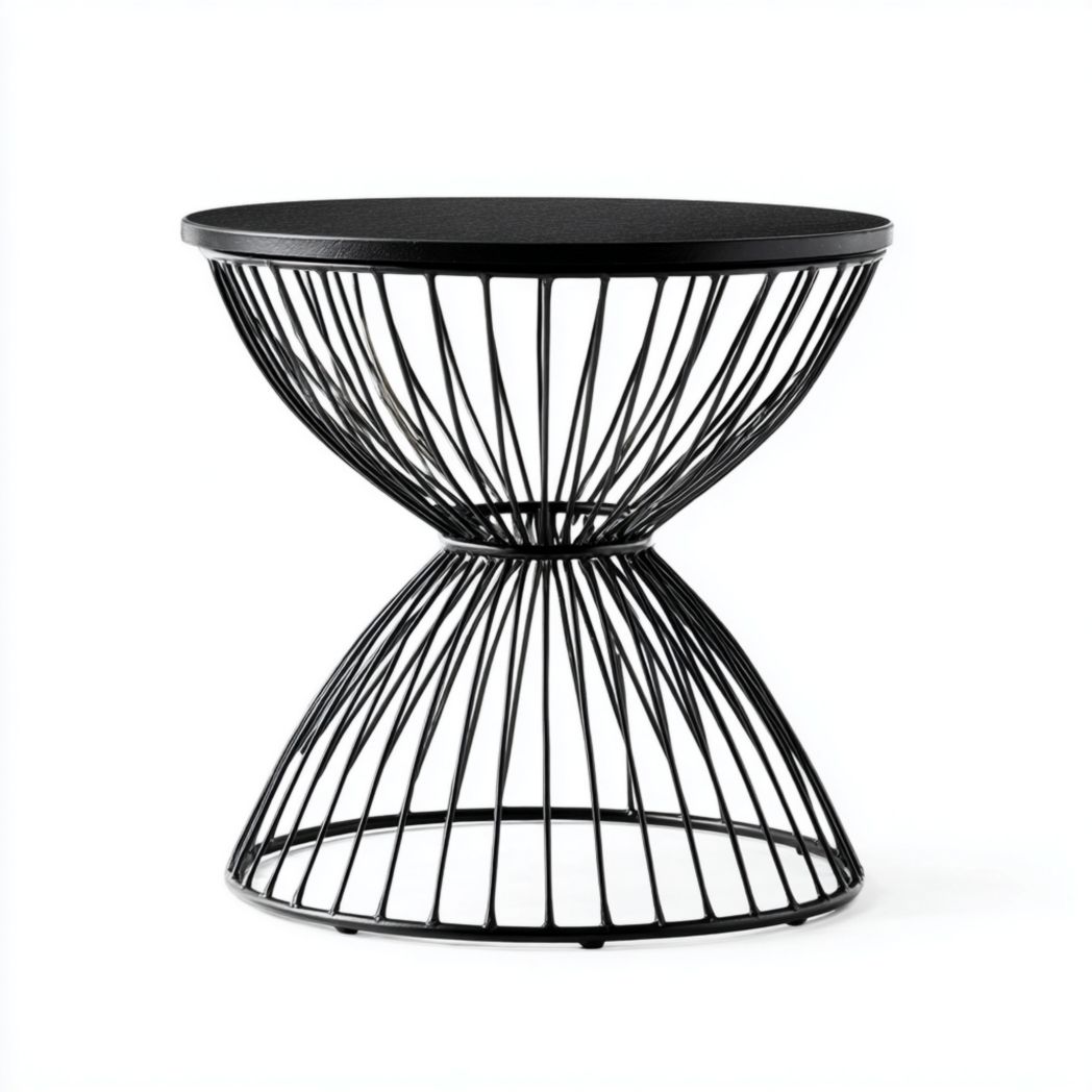 Table d’appoint en métal noir à structure filaire géométrique