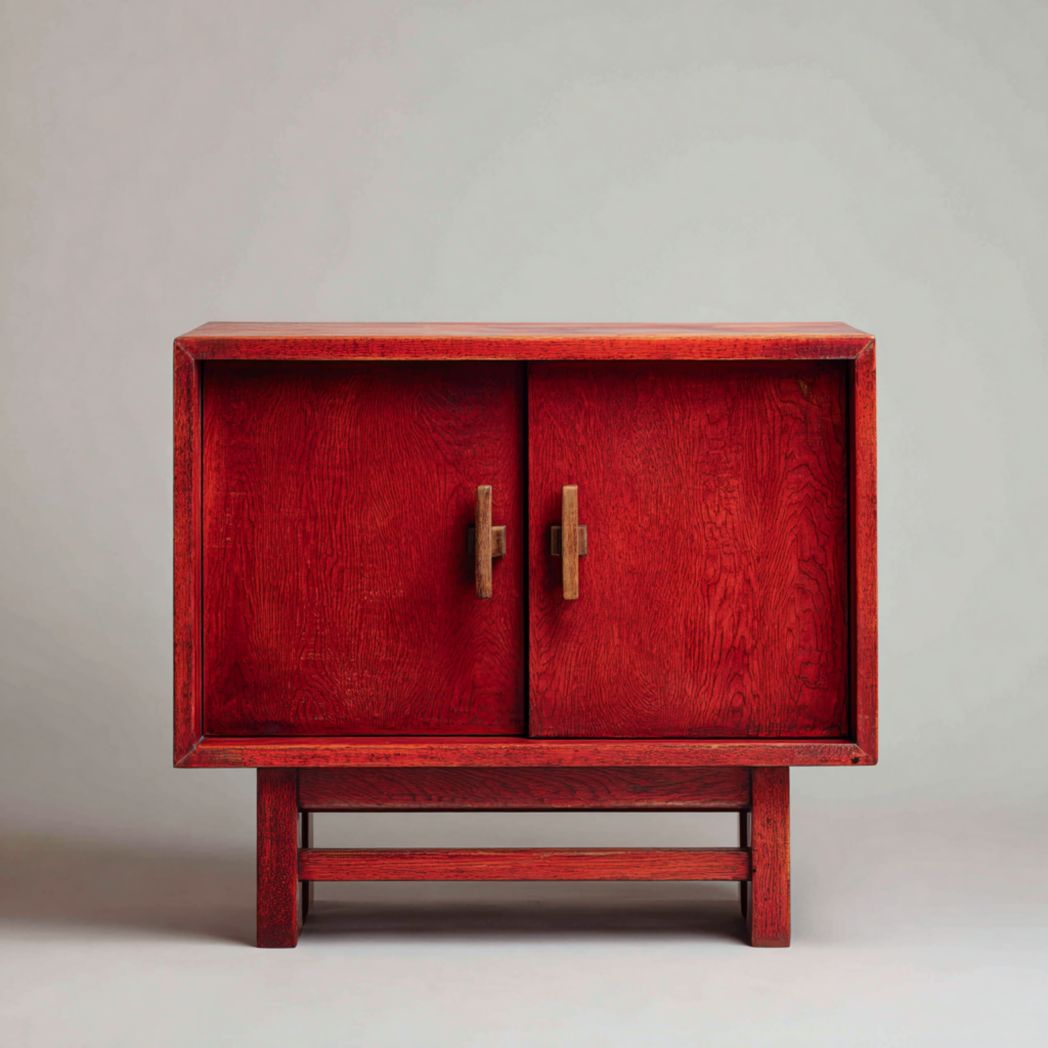 Buffet en bois rouge avec portes doubles et base à cadre carré