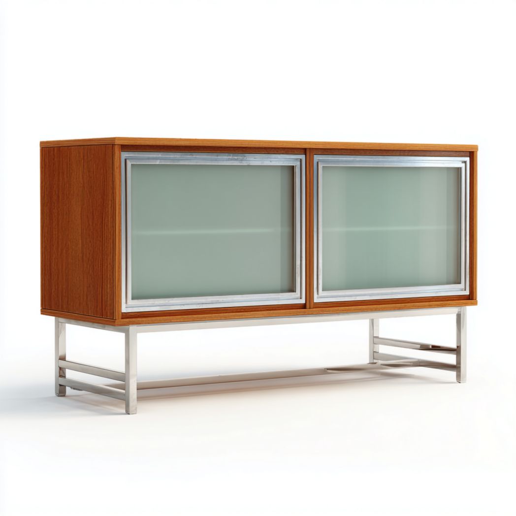 Buffet en bois rose avec deux tiroirs et portes doubles