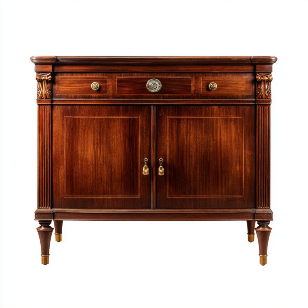 Buffet en bois rouge-brun avec un seul tiroir et des portes doubles