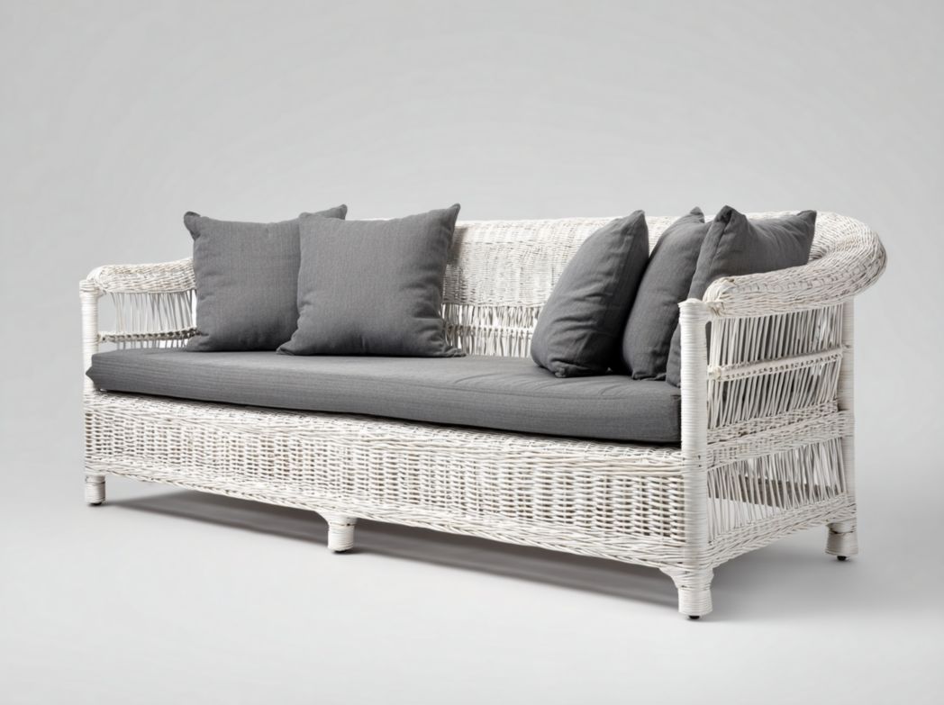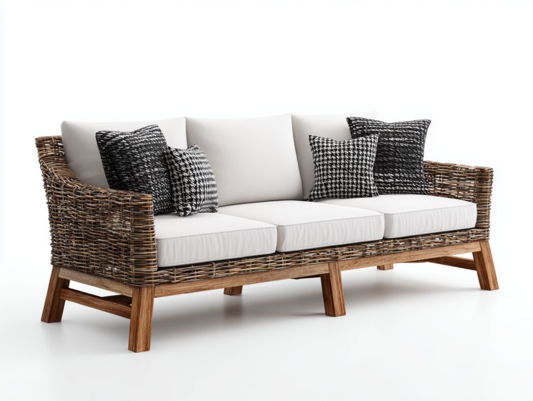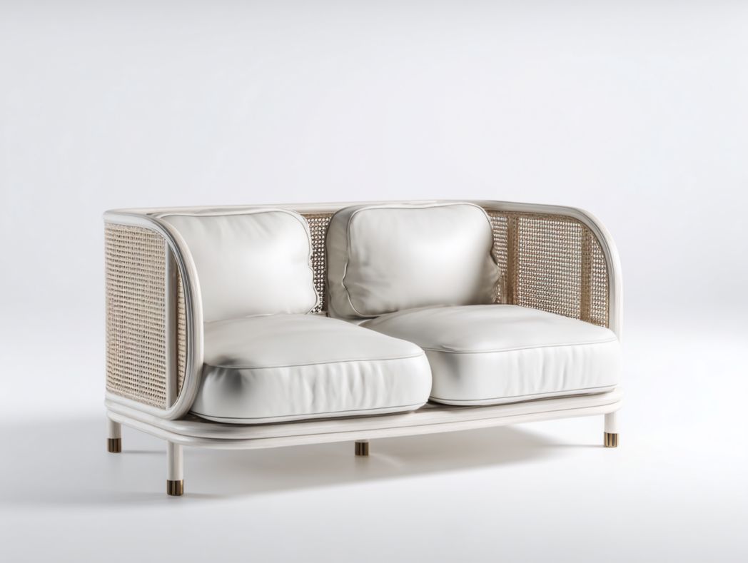 Canapé de jardin en rotin avec 2 coussins et 2 assises blanc cassé