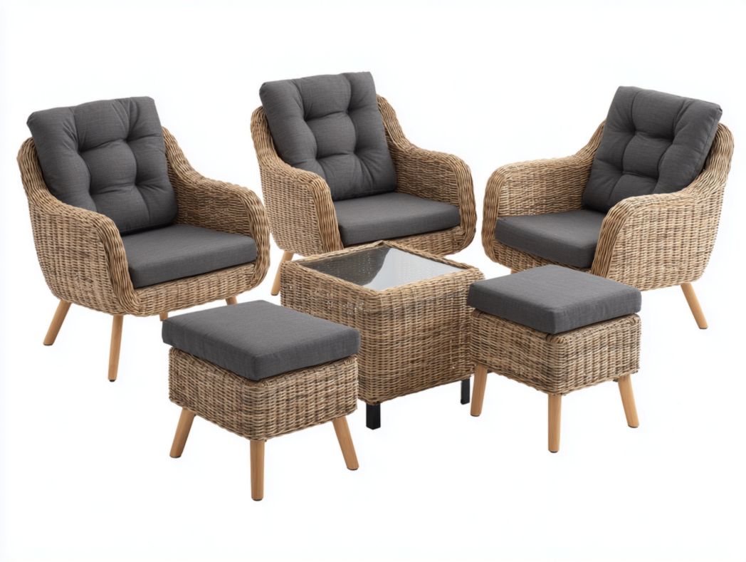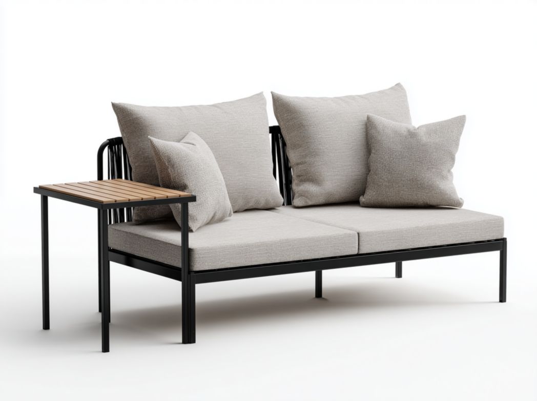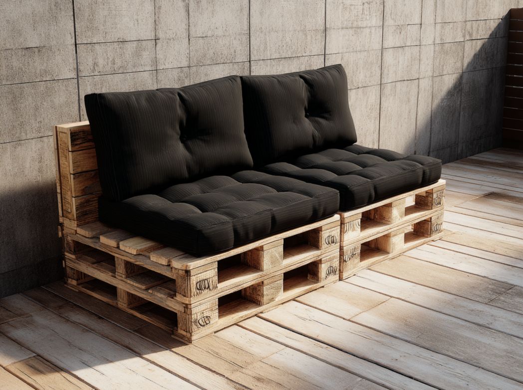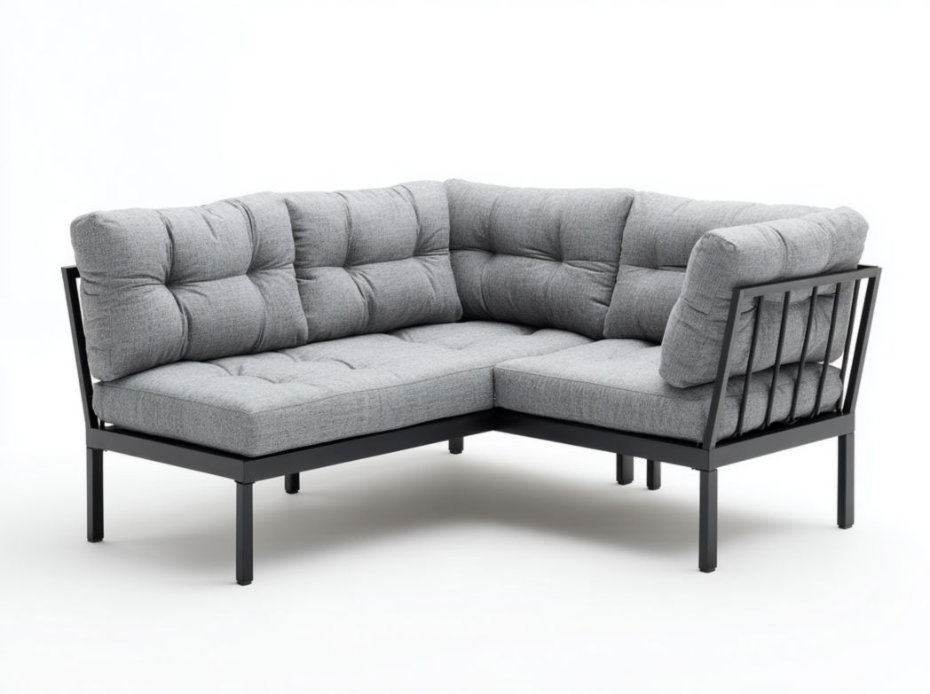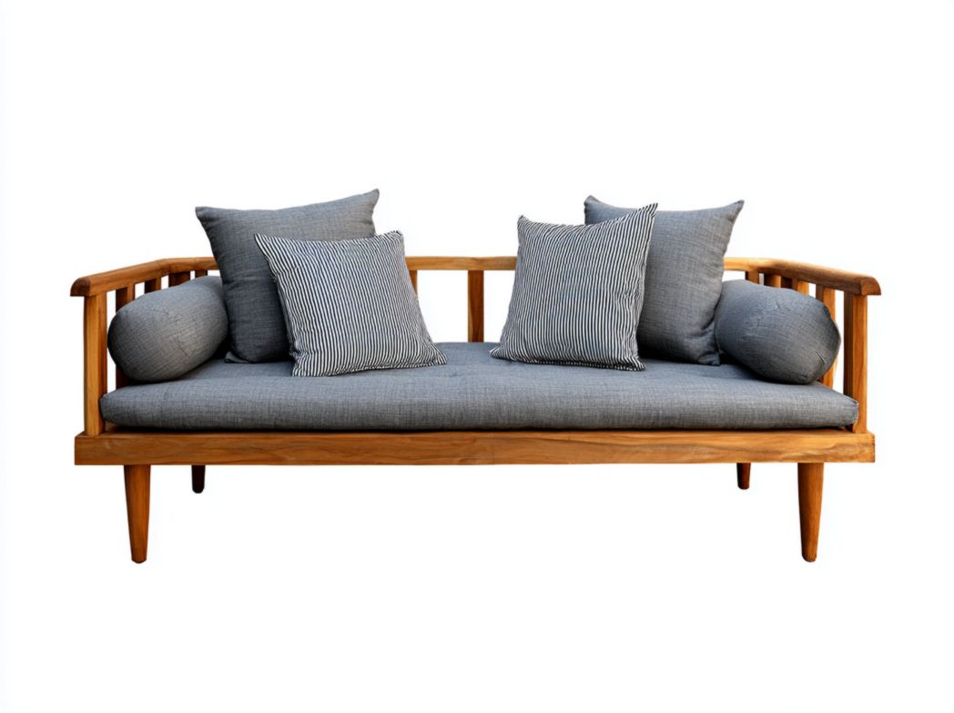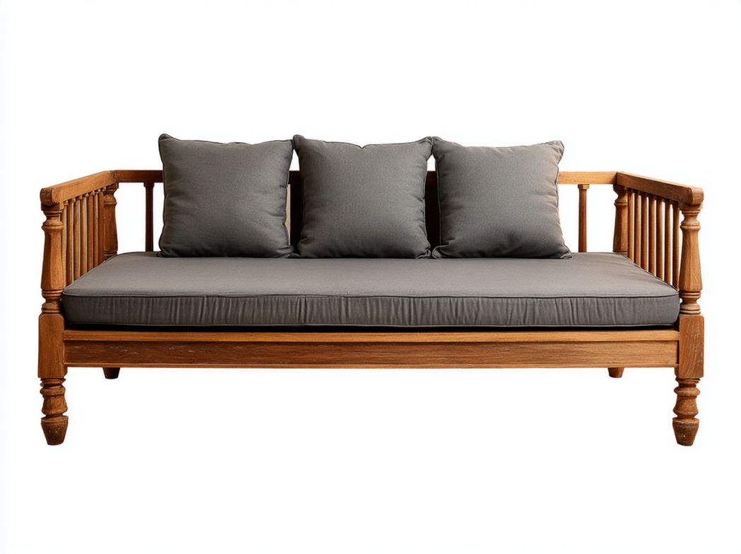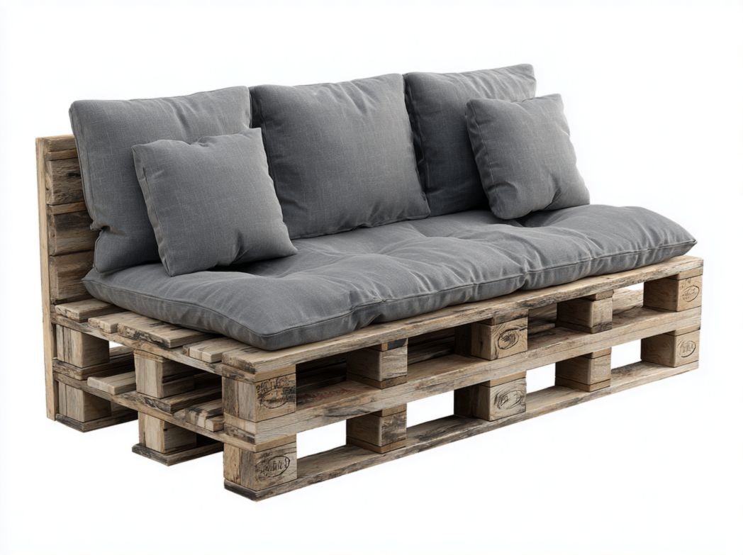 Canapé de jardin 3 places – structure en bois avec coussins gris