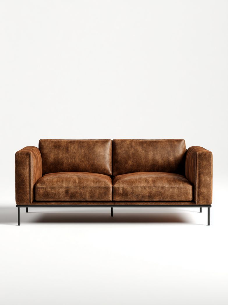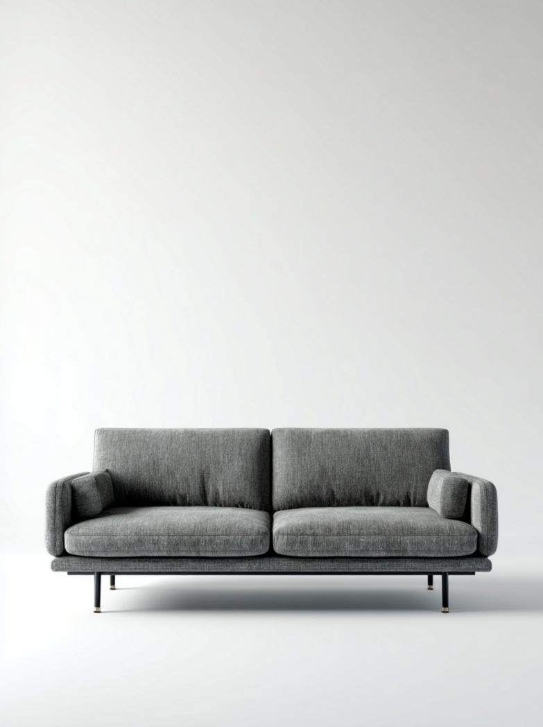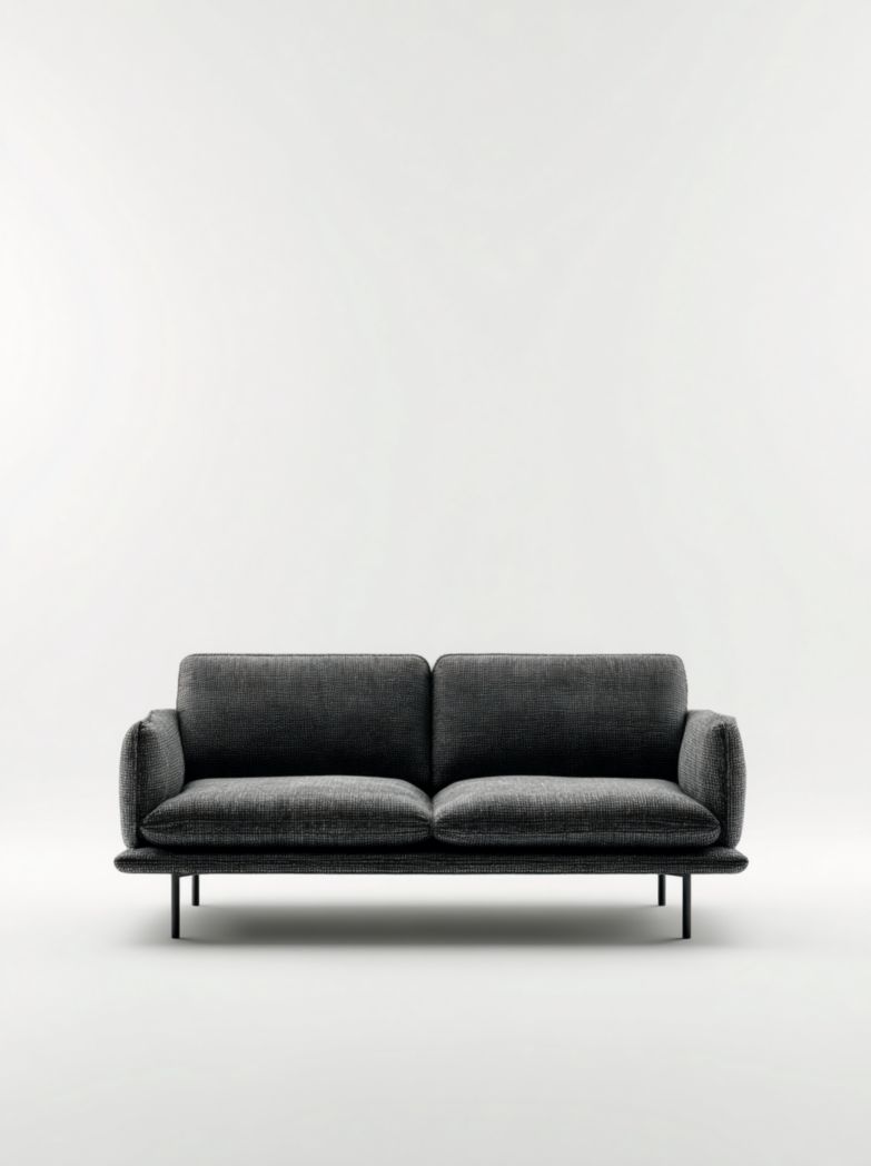 Canapé 2 places en tissu gris foncé avec pieds métalliques modernes