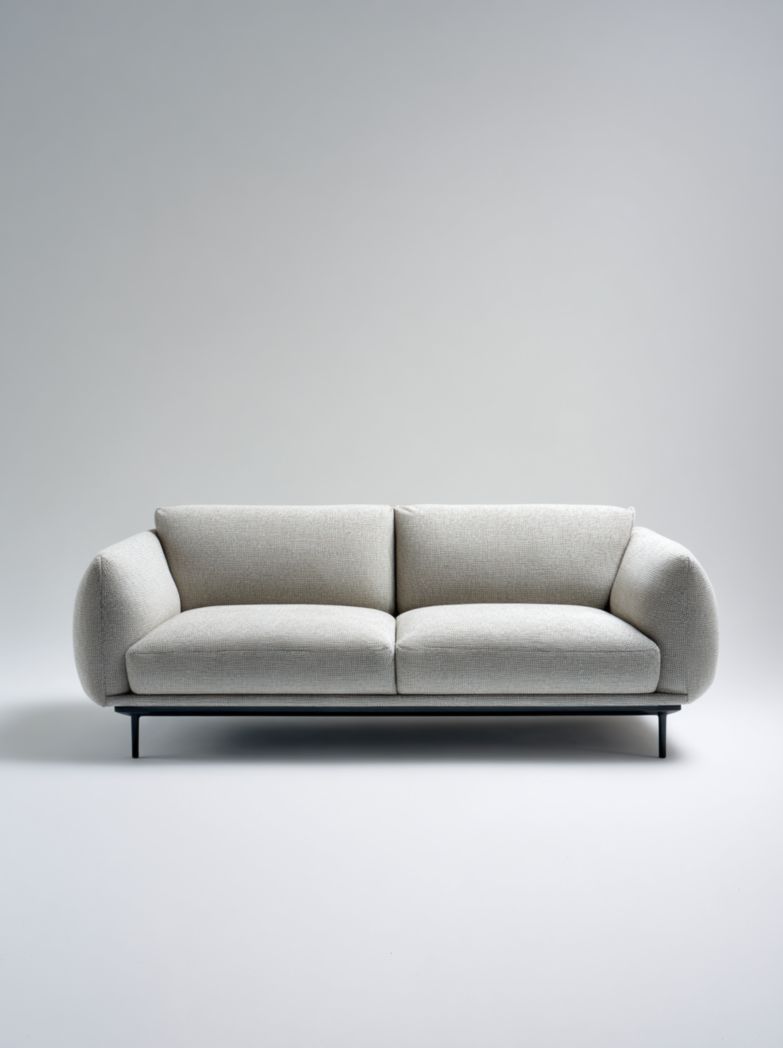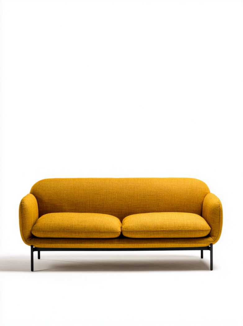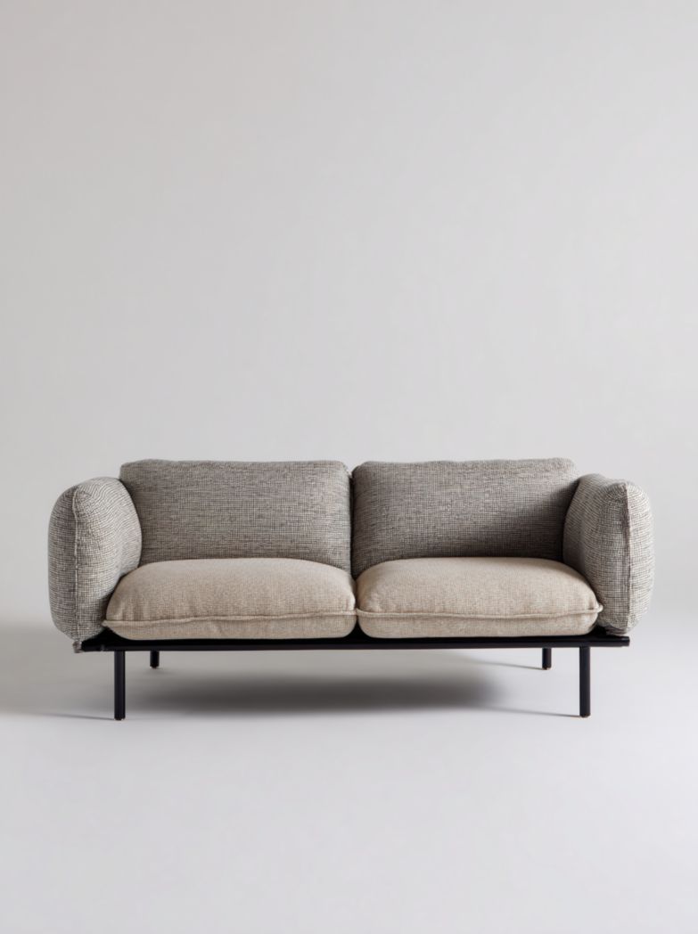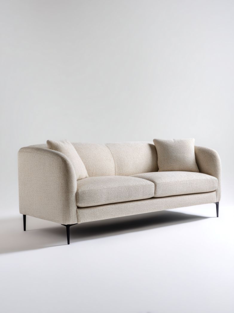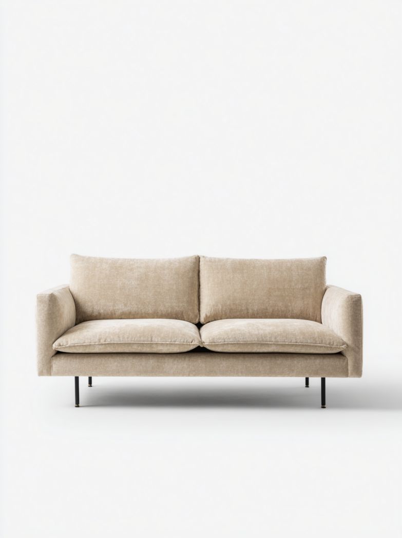 Canapé 2 places en tissu beige avec pieds métalliques noirs