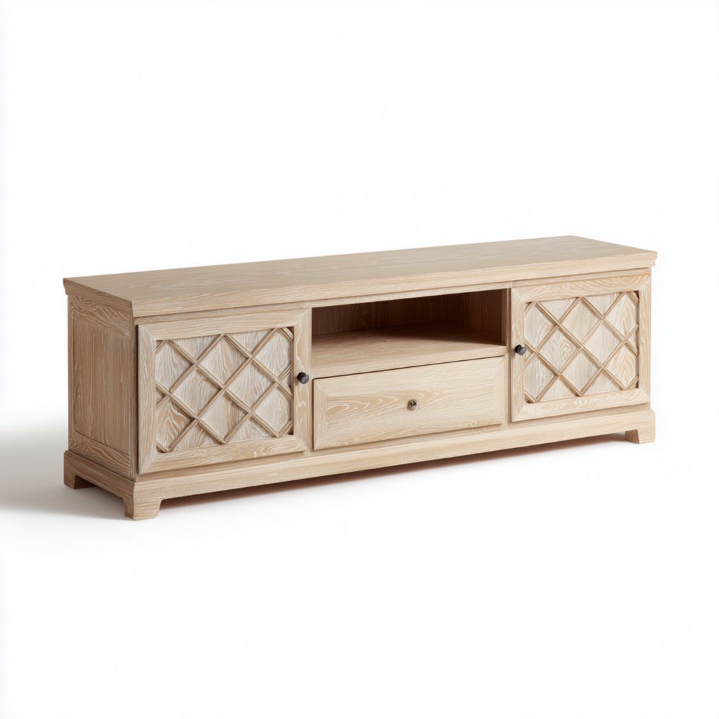 Meuble TV blanc cassé en MDF avec portes rainurées style français