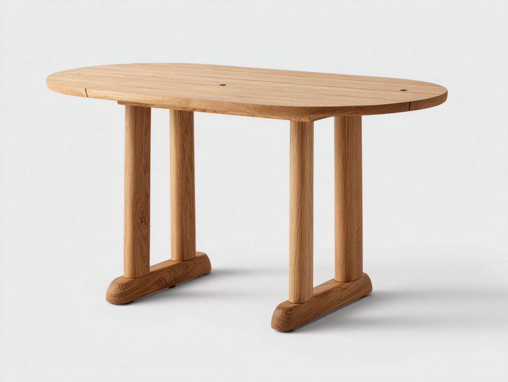 Table ovale en bois naturel avec une base à double colonne