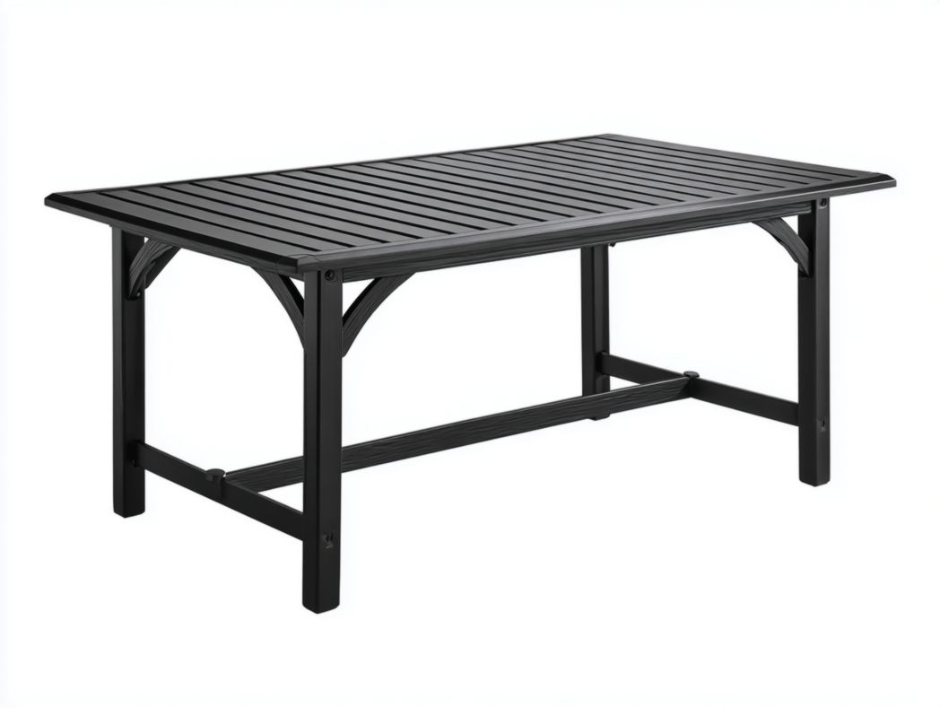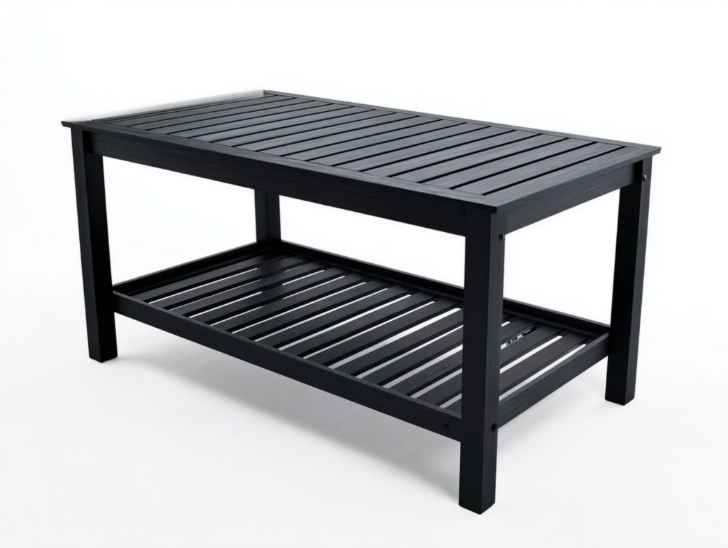 Table rectangulaire en métal noir à doubles niveaux à lattes