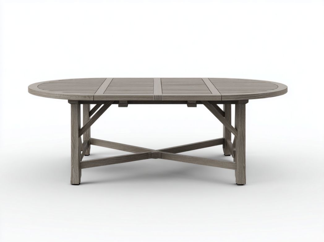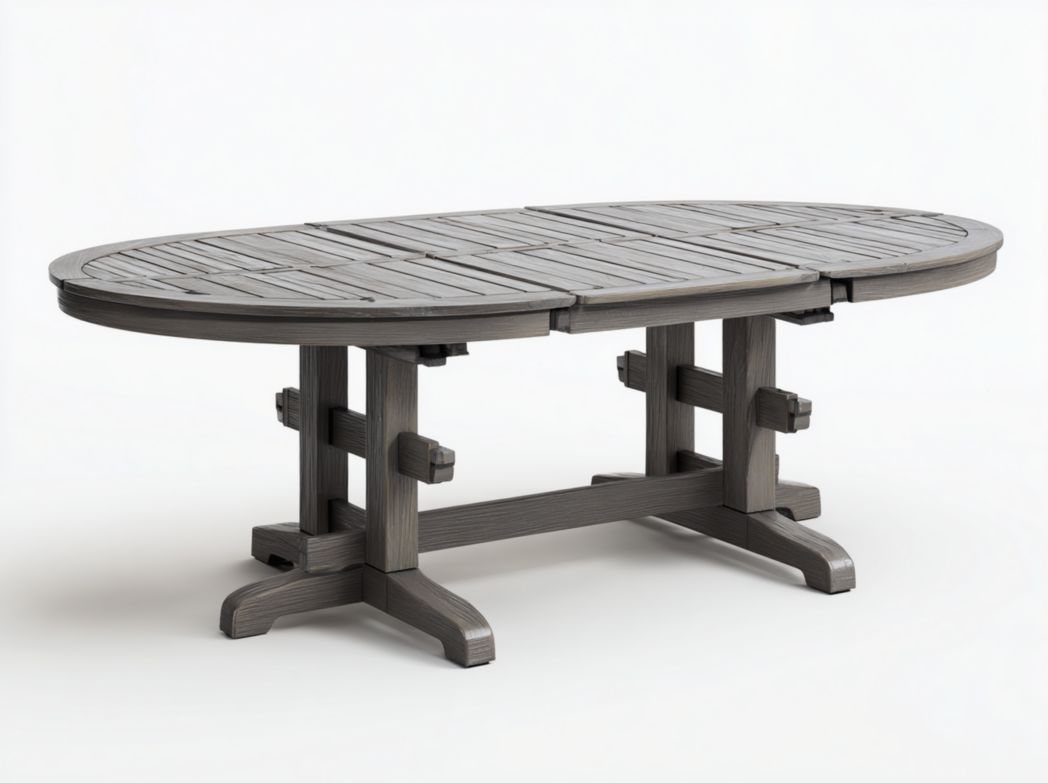 Table ovale en bois massif gris foncé avec une base à double colonne