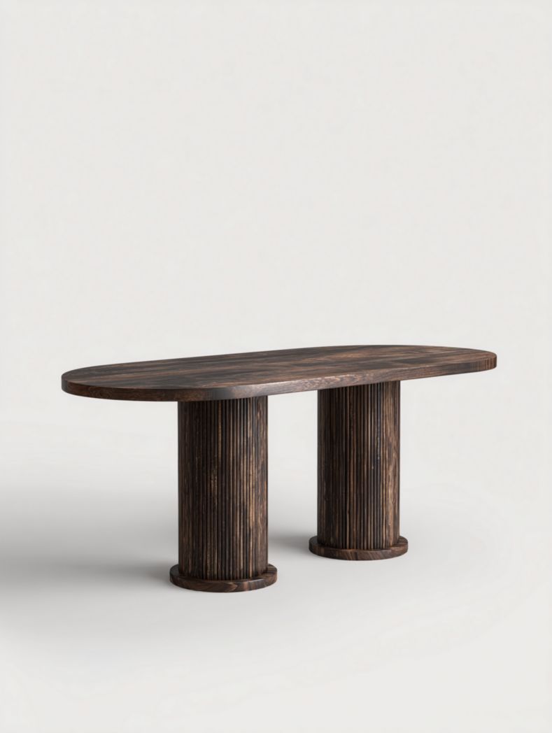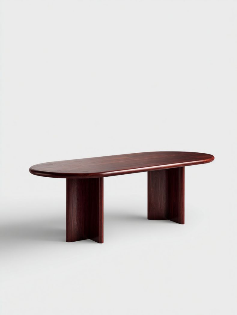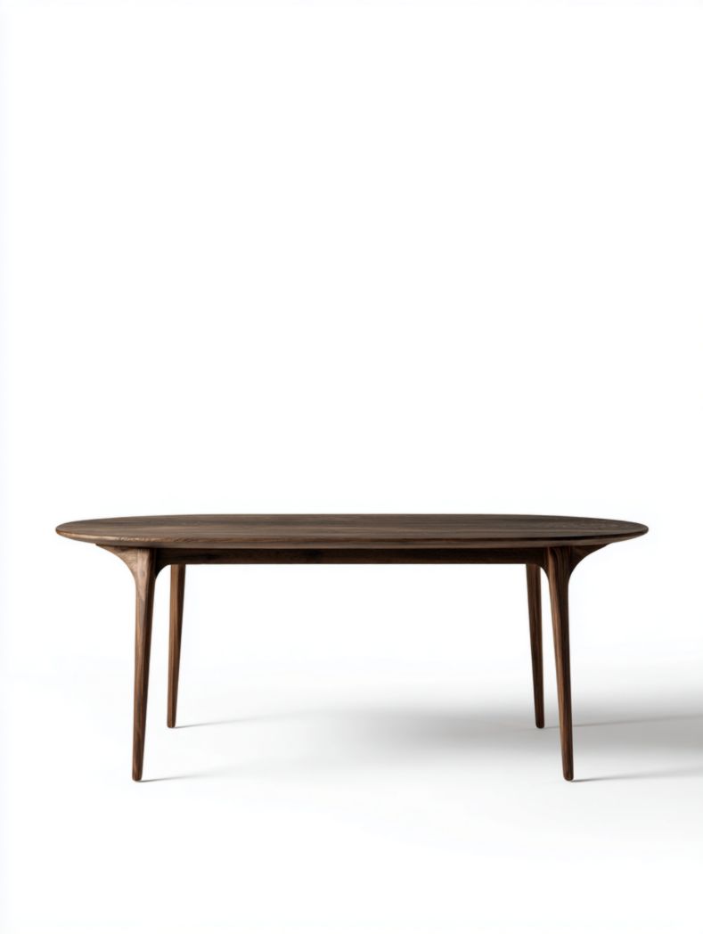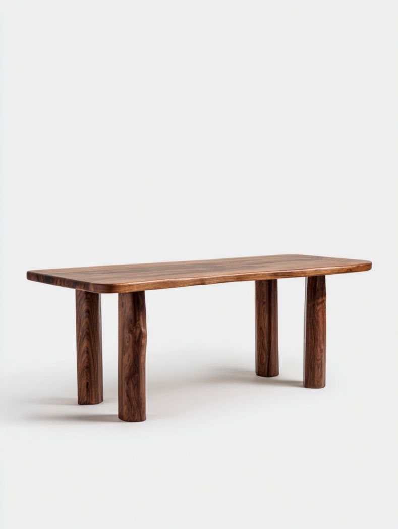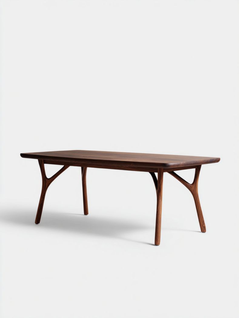 Table à manger rectangulaire marron foncé avec pieds en bois arqués