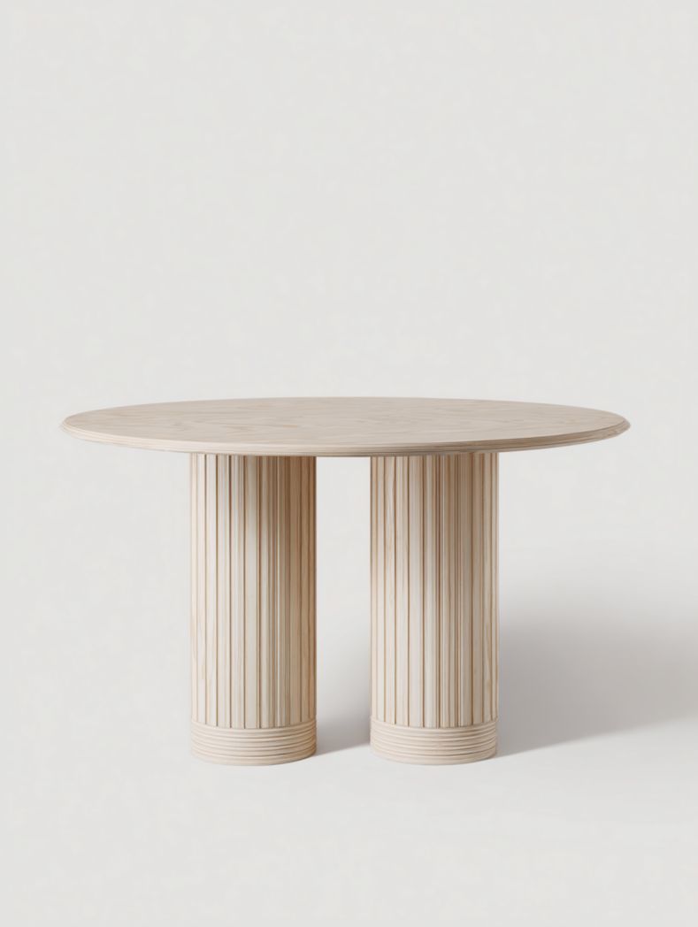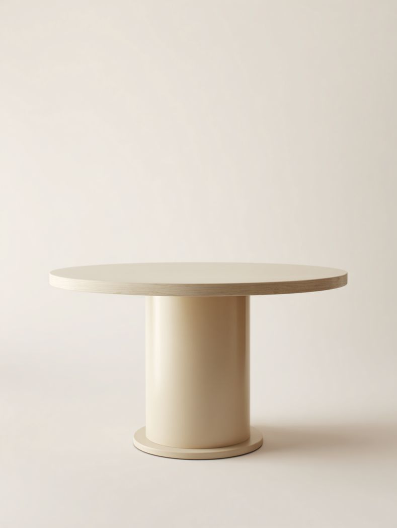 Table à manger ronde beige avec base cylindrique