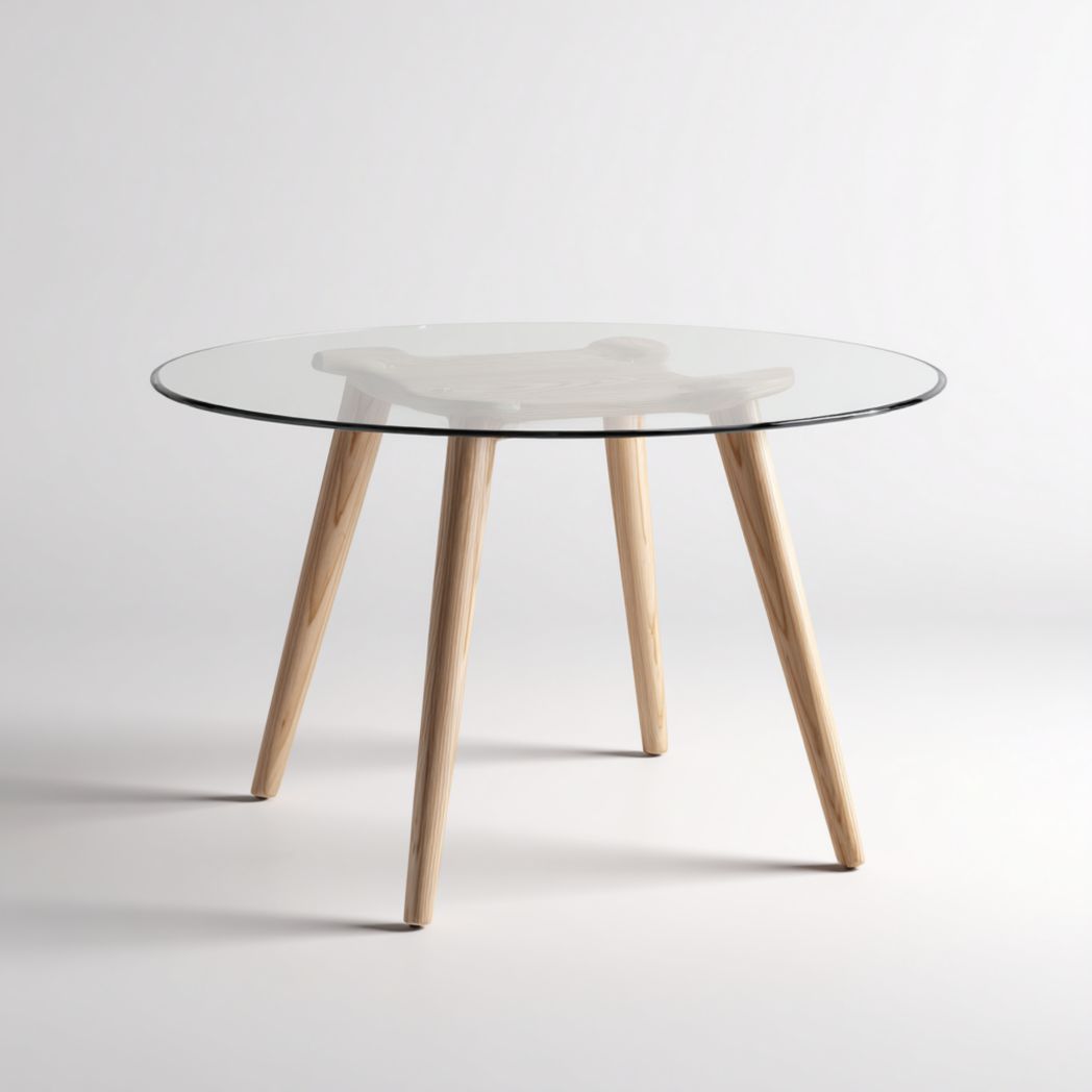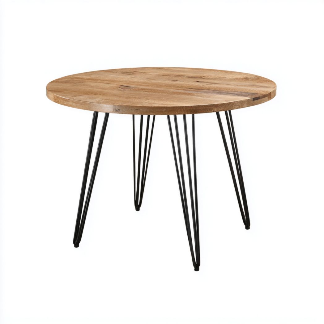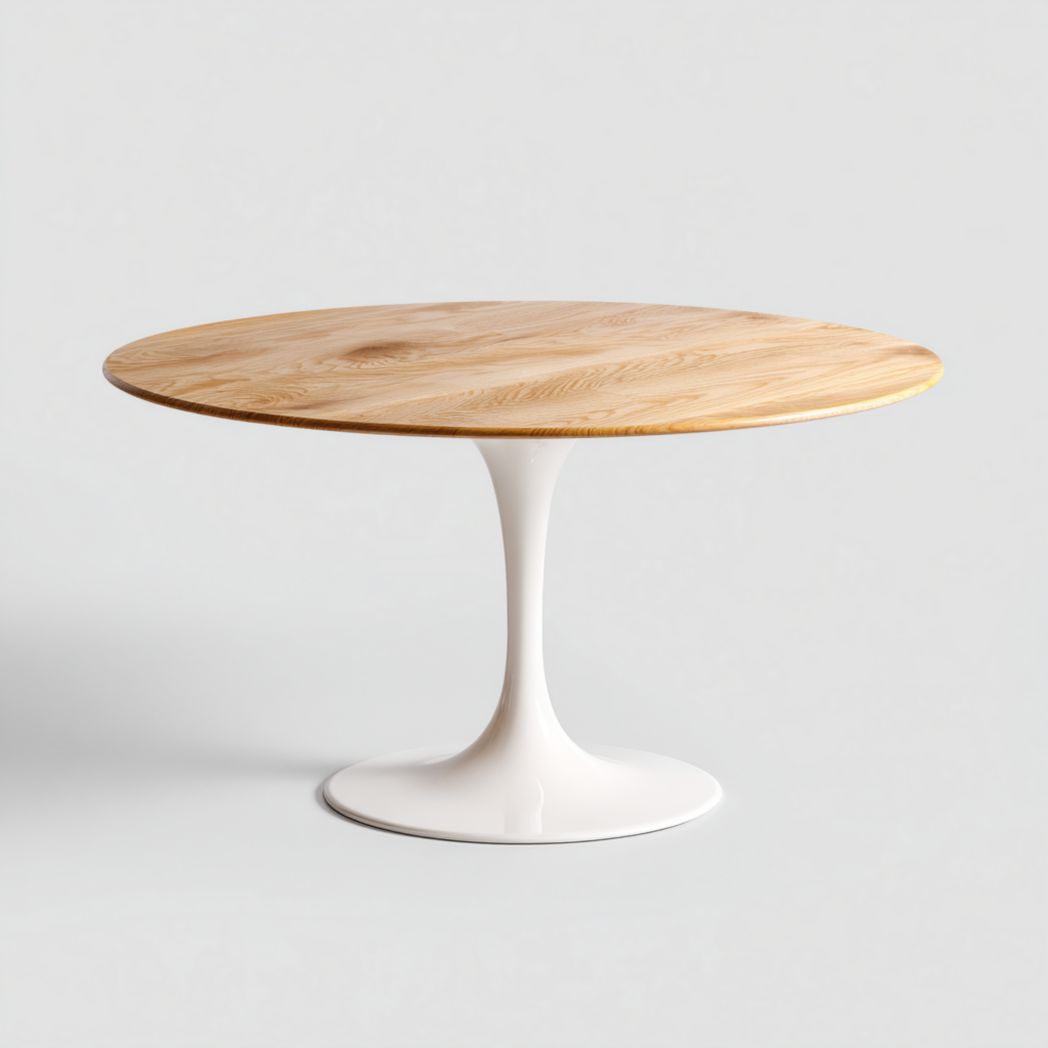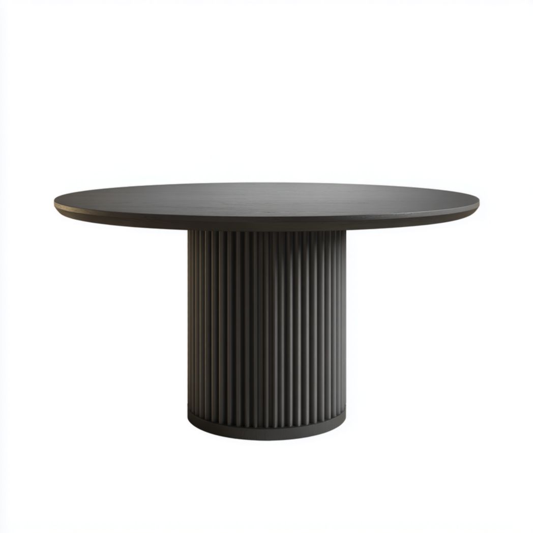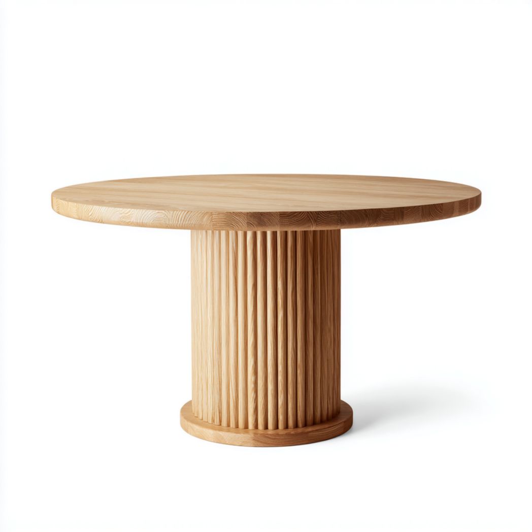 Table à manger ronde Plateau bois Base cylindrique rainurée