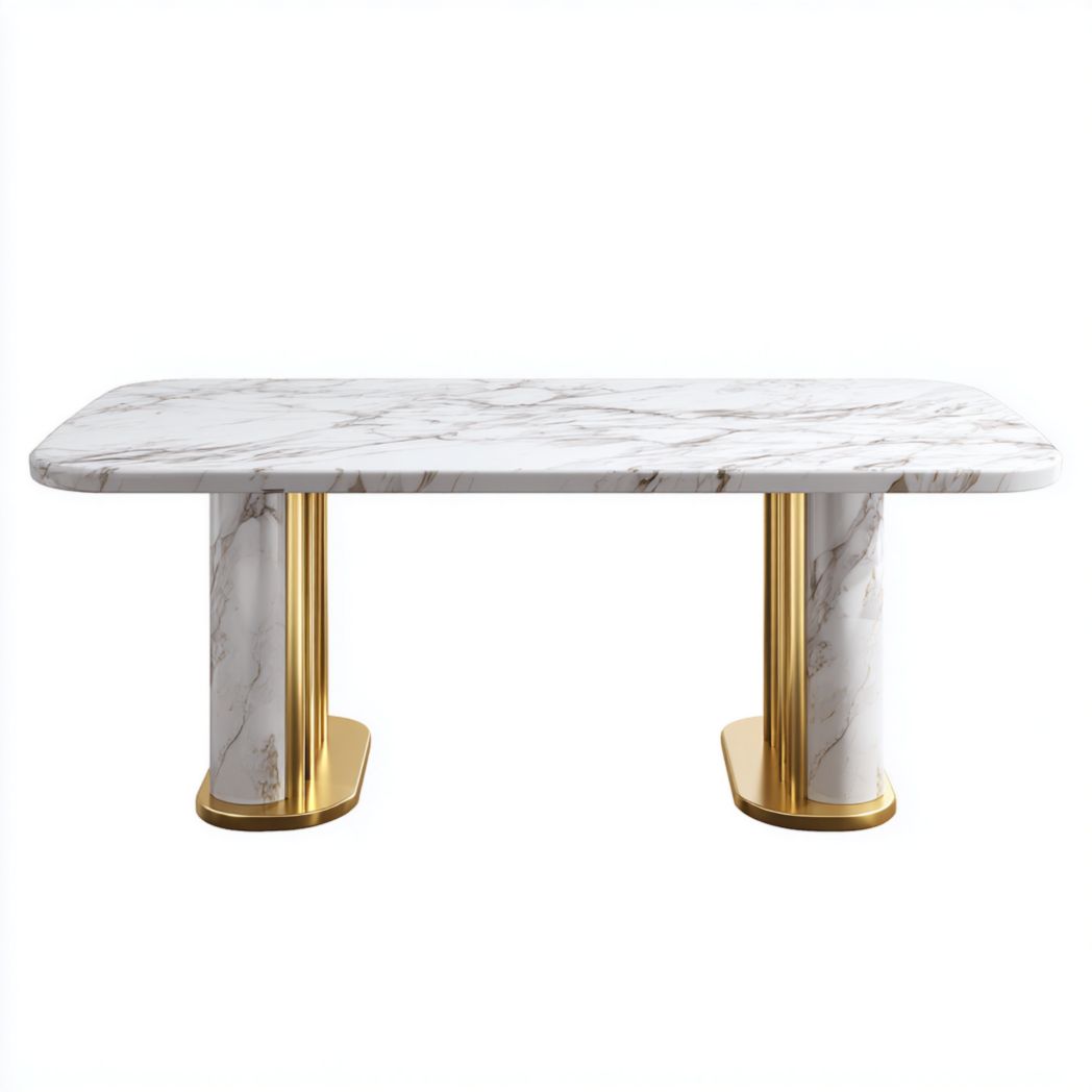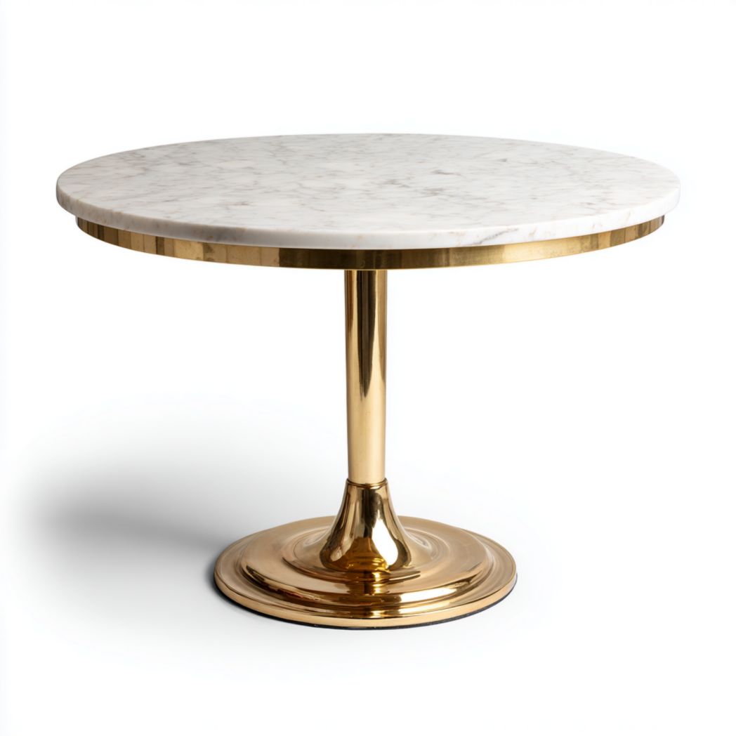 Table ronde en marbre blanc avec base en métal doré
