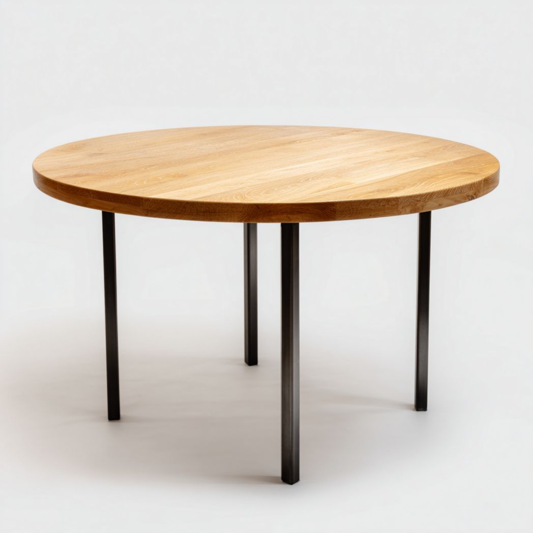 Table ronde en chêne avec pieds en métal