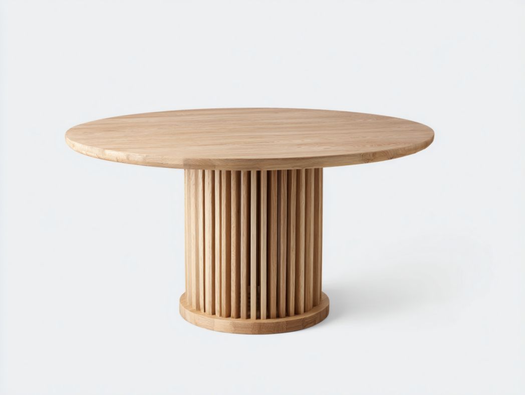 Table à manger ronde blanche avec pieds en bois naturel