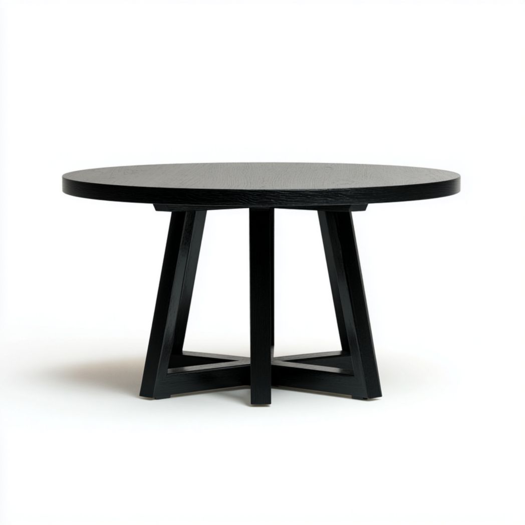 Table ronde en bois noir avec piètement croisé