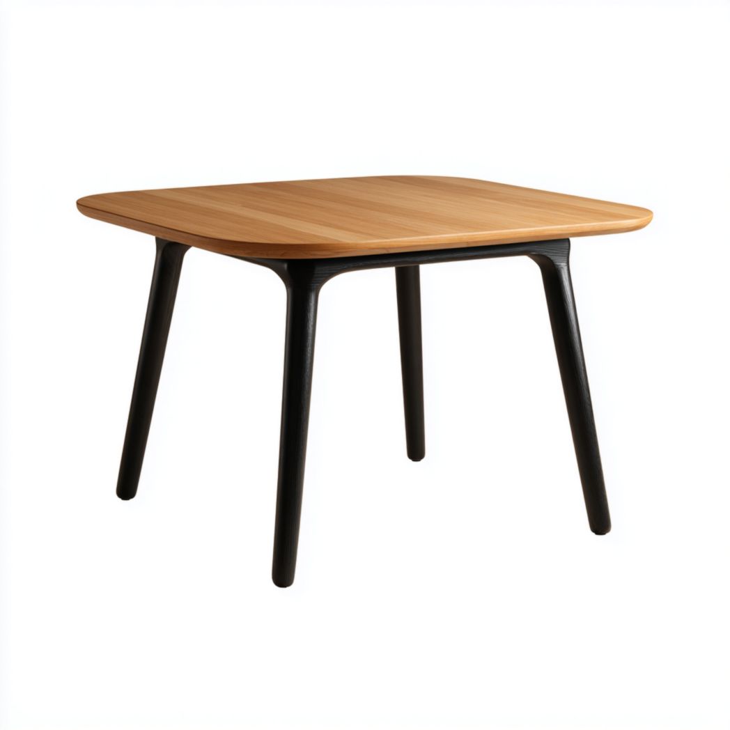 Table carrée en bois avec pieds en bois noir