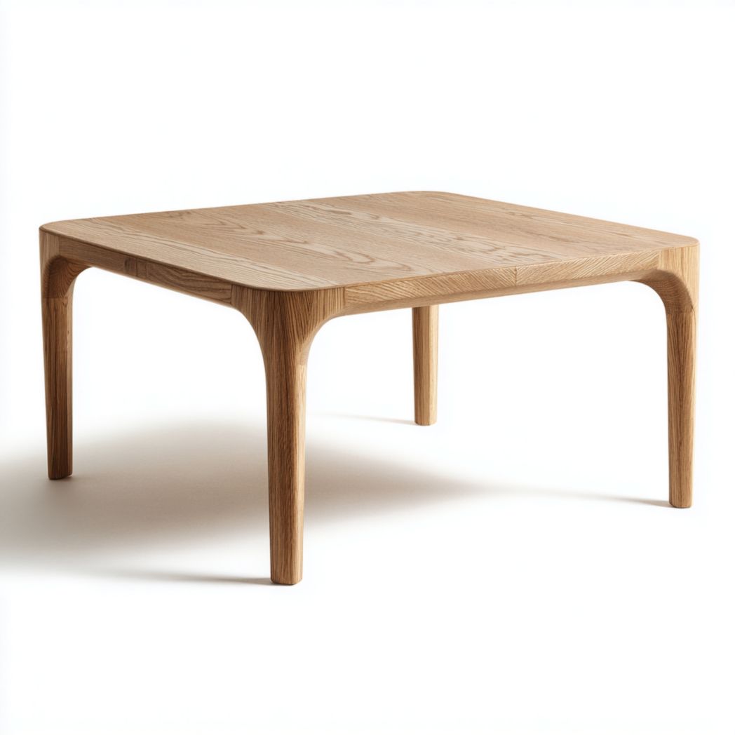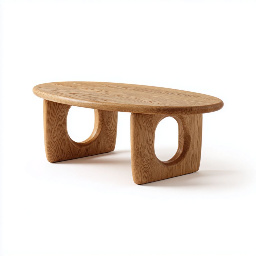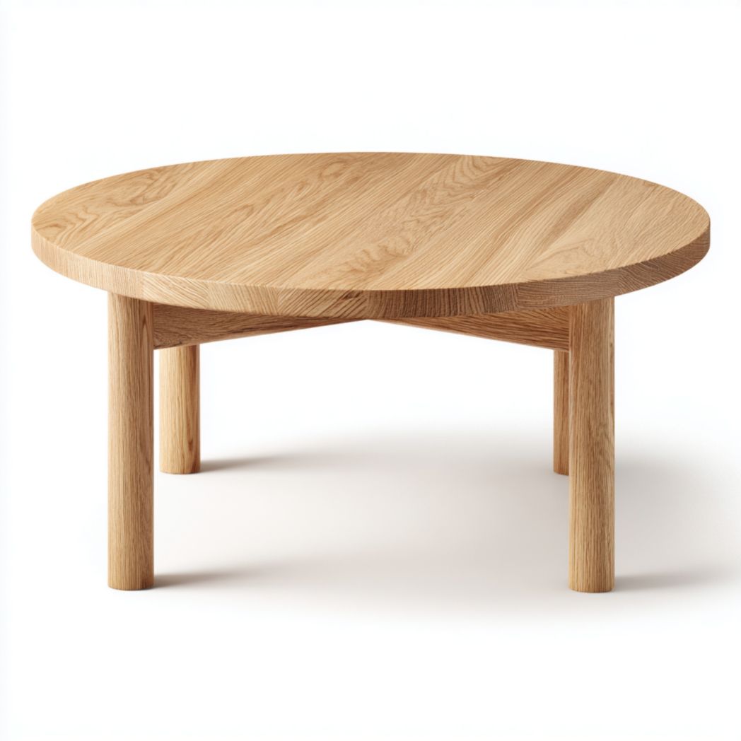 Table basse ronde en bois – pieds sculptés et finition brun clair