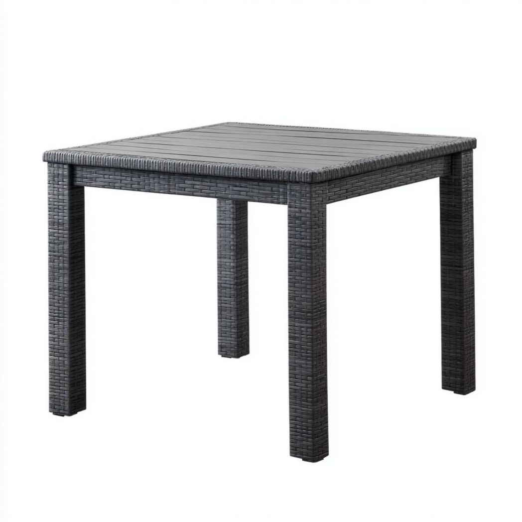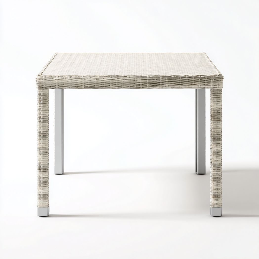 Table de jardin carrée en rotin blanc cassé avec pieds en métal
