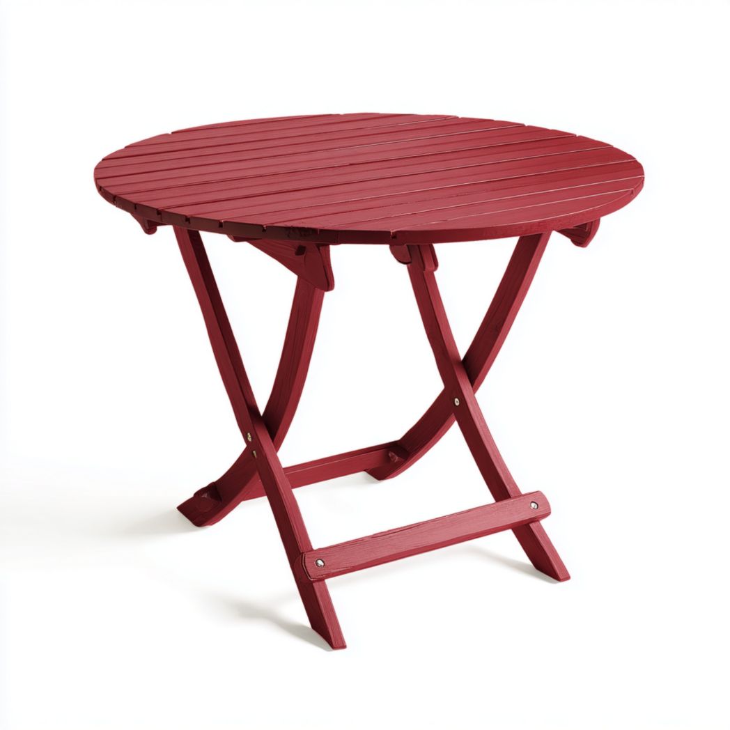 Table de jardin rectangulaire en métal rouge avec barres de renfort