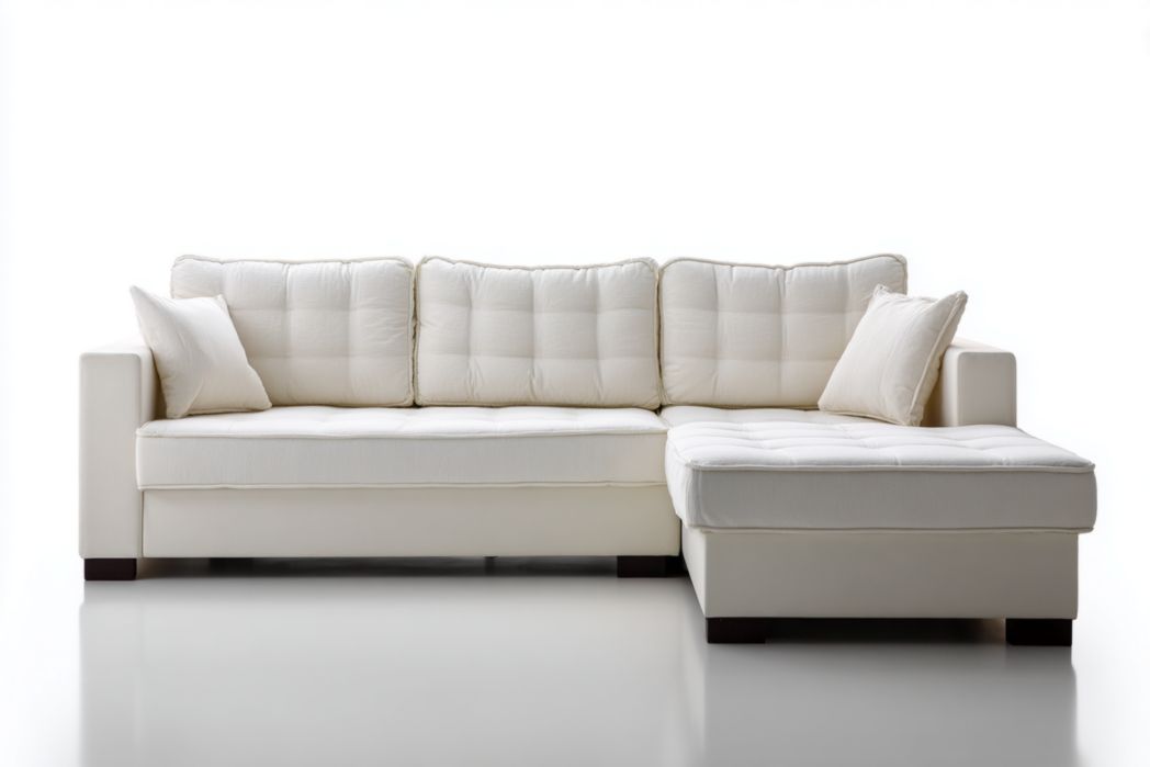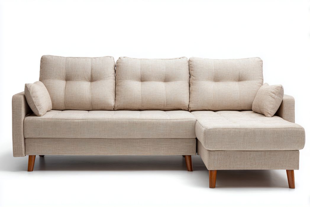Canapé d’angle en tissu avec méridienne à droite et modules assemblés